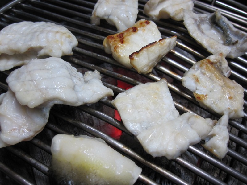 まずは先乗りの金曜日の晩御飯。焼きふぐです。
