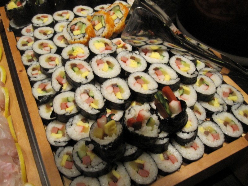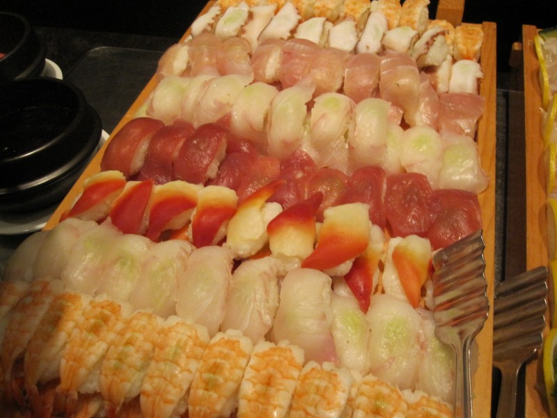 お昼ご飯はビールをいただきながら、HILTONでお寿司です。