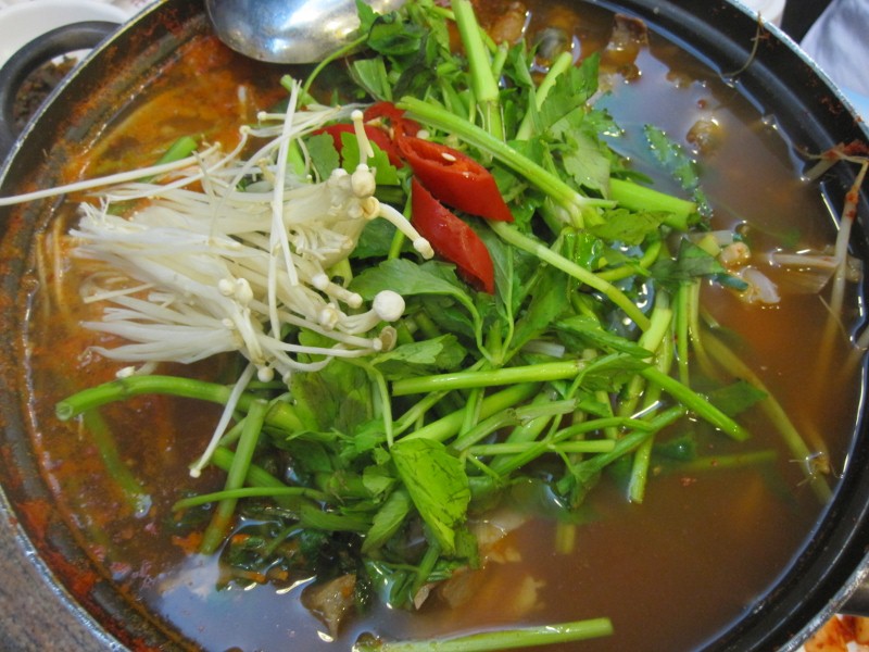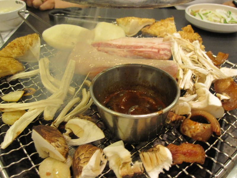 朝ごはんは、丸ごとの鮑と、松茸入りのテンジャンチゲ(味噌汁鍋)で軽くいただきました。(笑)