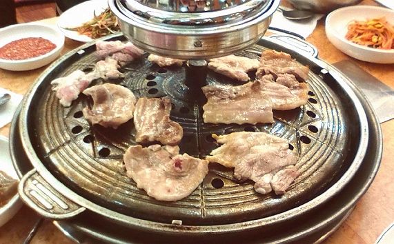サムギョプサル(韓国豚の3枚肉)のお店での焼肉パーティーです。