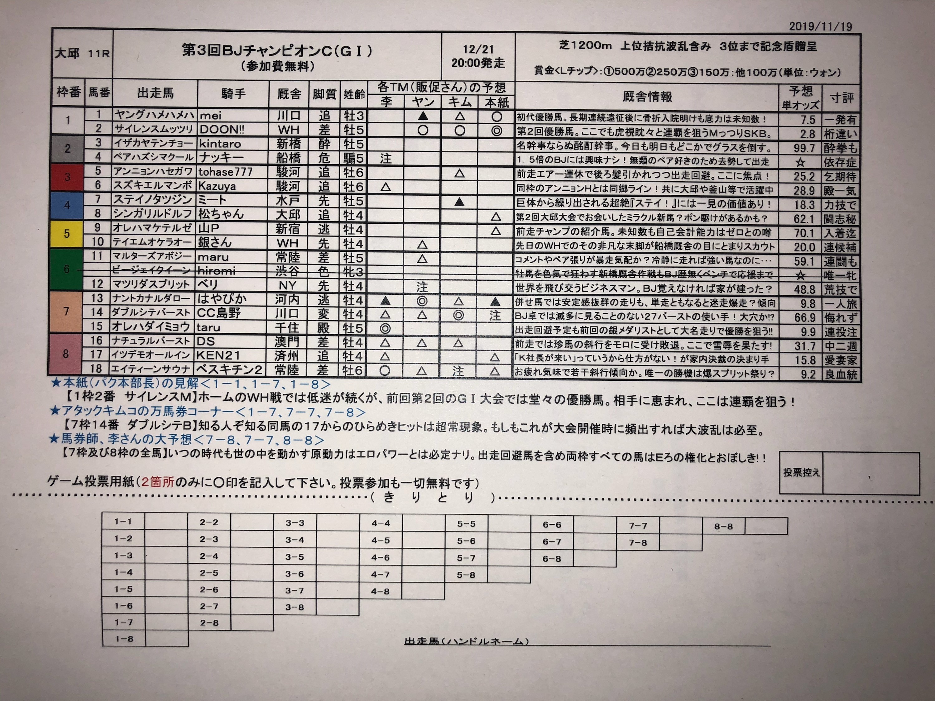 こうして12/21(土)20時、「第3回大邱BJチャンピオンC」発走の運びとなりました。