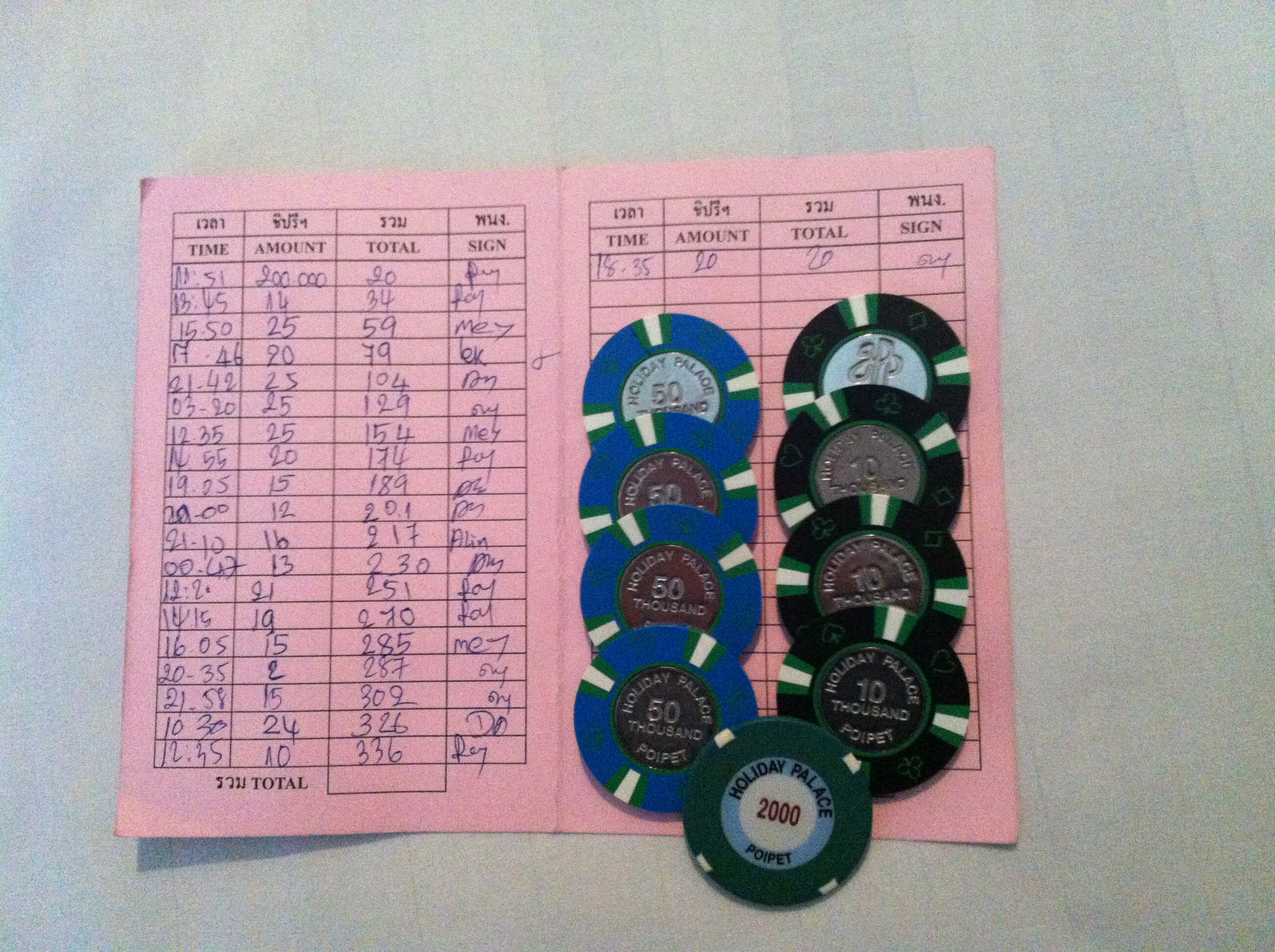 従いチップをそのまま 現金に変えて 今回遠征のルーレットは終了 結局-2万だったが少し戻って来た。