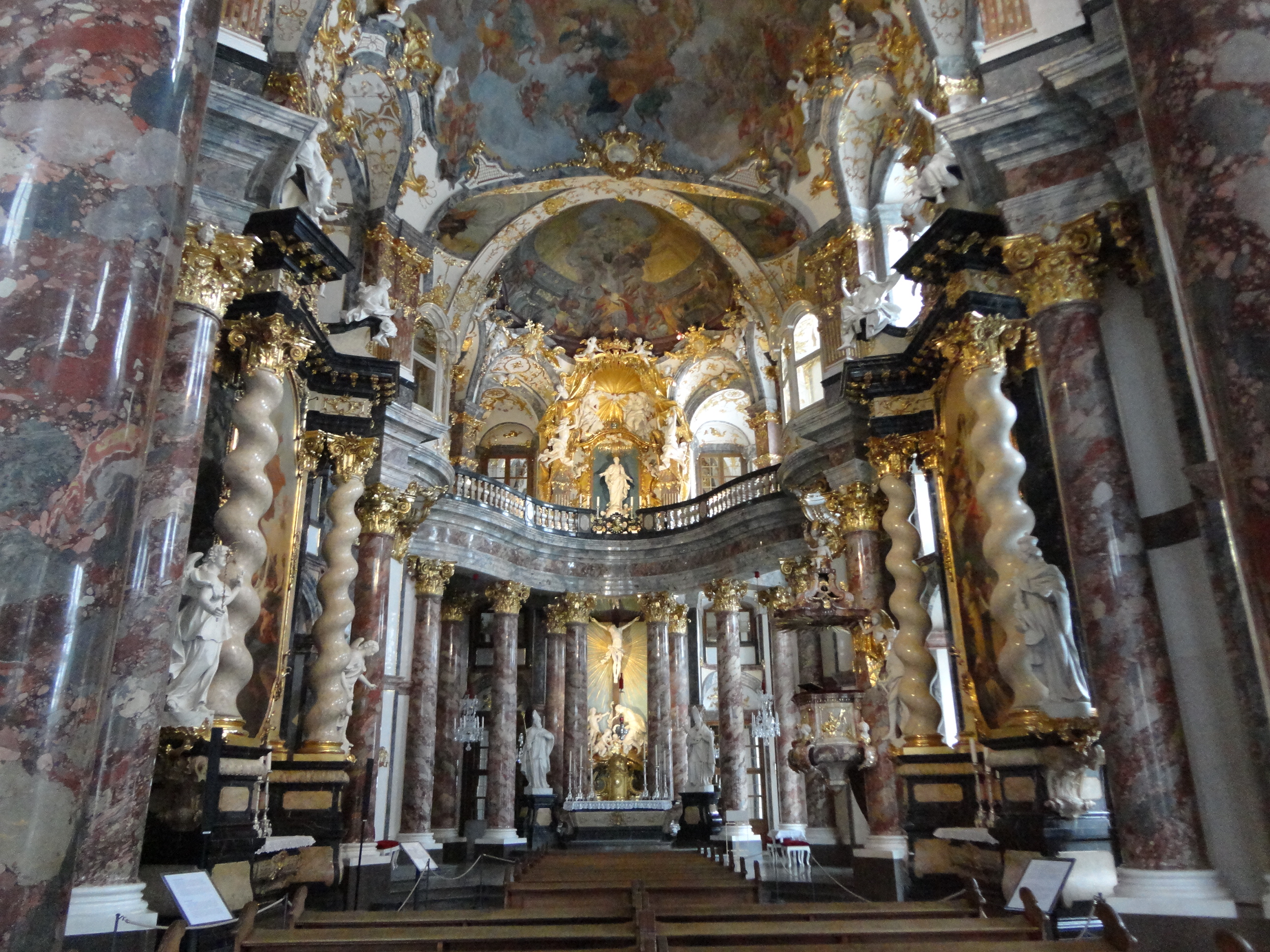今回は幸運なことに、入ることが出来た。レジデンツは入場料を取られるが、こちらは教会なので無料。庭園に面した方のドームのある大きな礼拝場はそれは見事な造り。しばらく見入ってしまい、写真を撮ることは禁じられていたが思わずシャッターを押してしまった・・・ゴメンナサイ。