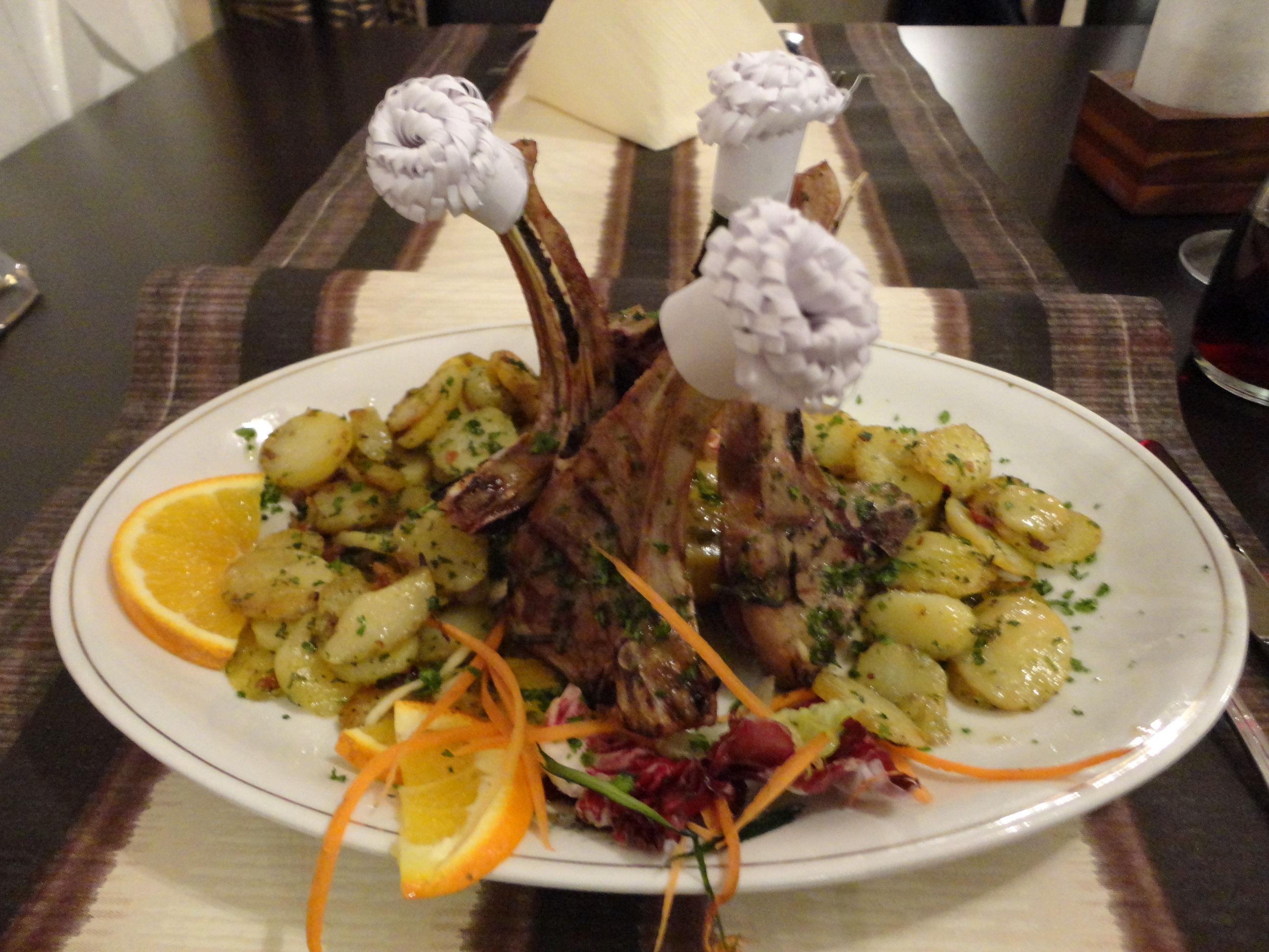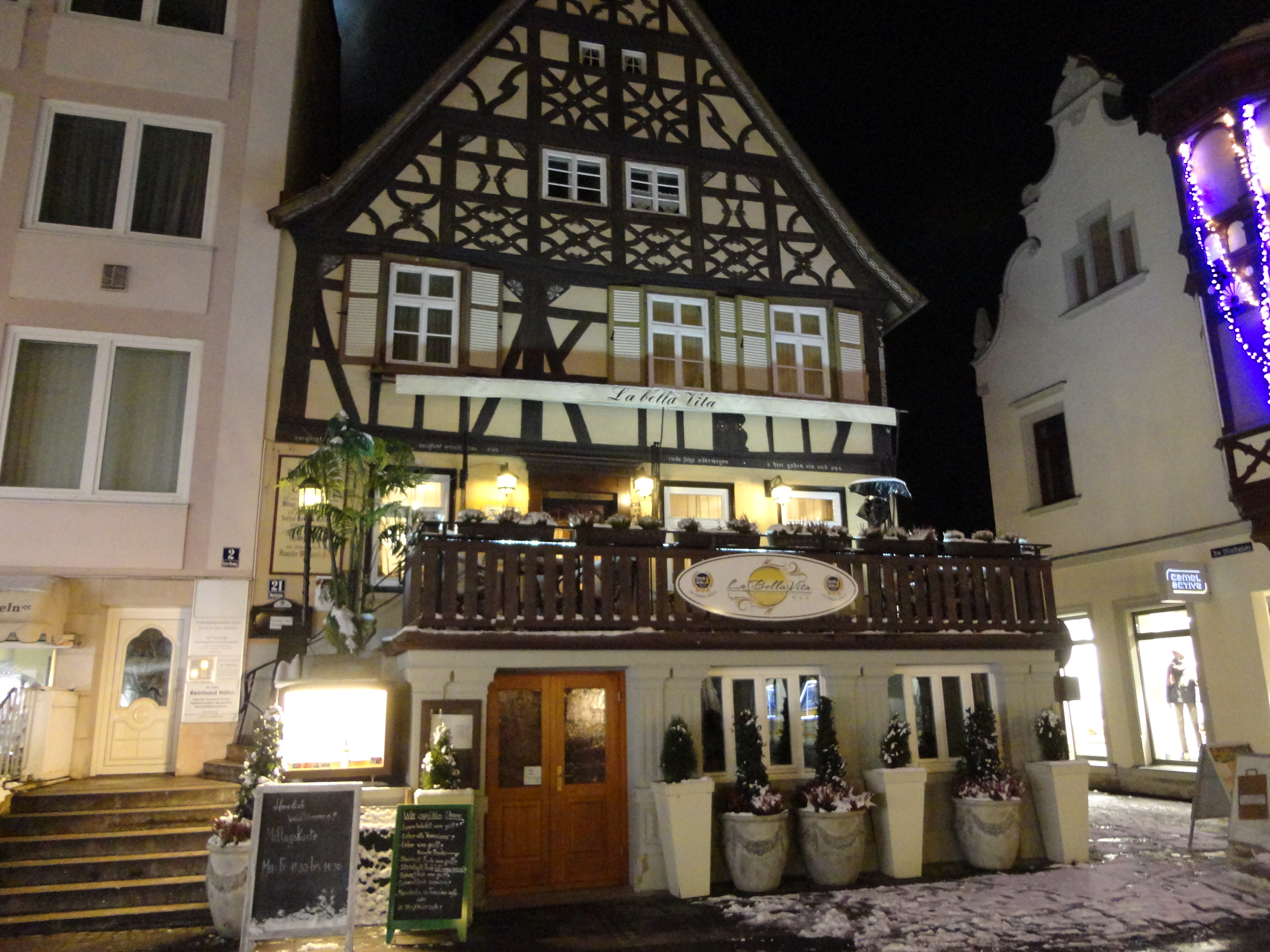 やっと見つけたのが、マルクト・プラッツの正面にある店。20年ほど前に一度入ったことがあったが、ドイツ料理の店だったはず。2階の客席に案内されたが、メニューを見るとイタリア料理が載っている。代替わりして、イタリア料理の店に変わった様子。まあ、暖かい料理が食べられれば文句はない。