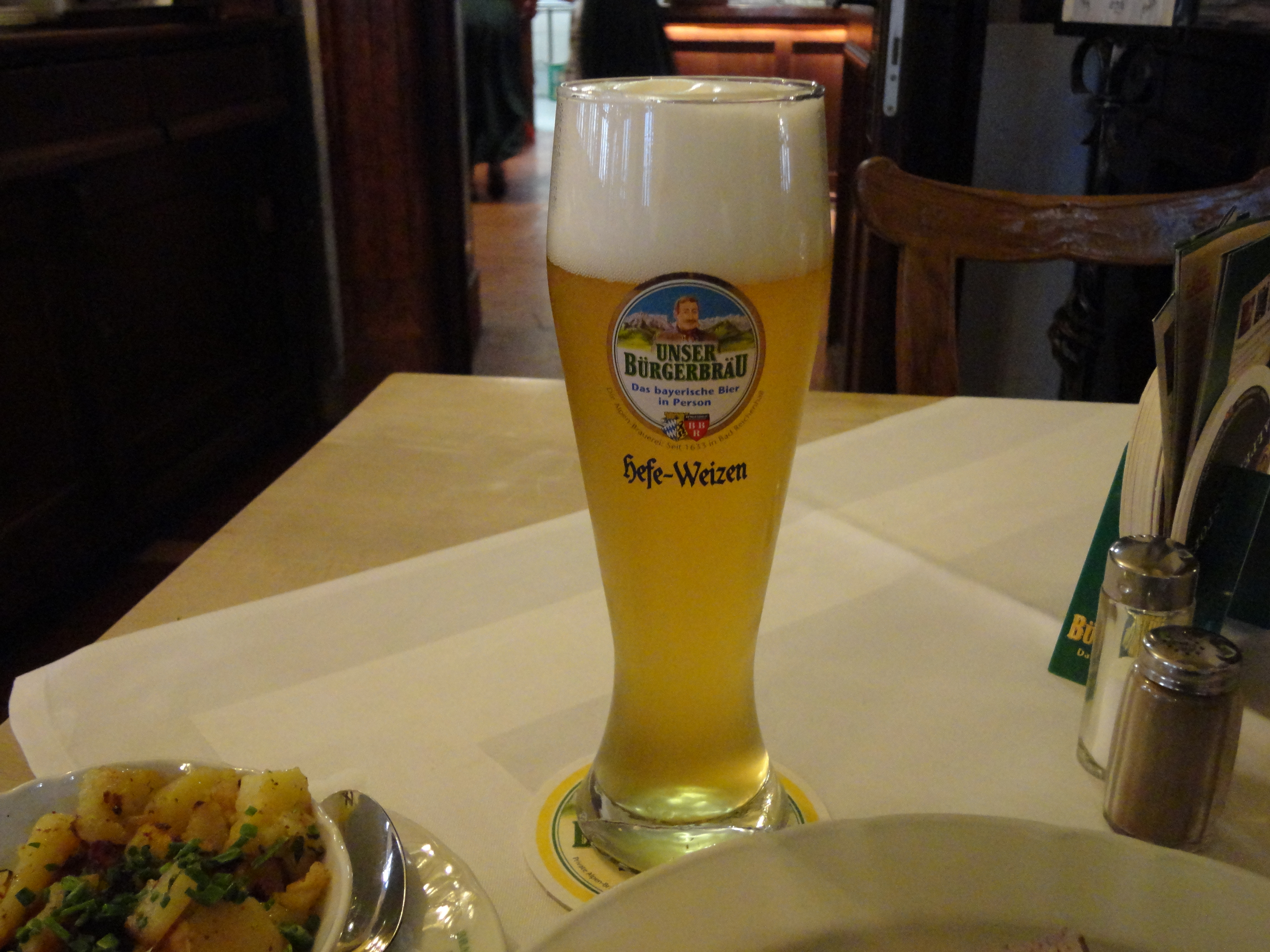 早い時間だし、この時期のドイツは21時位までは表は明るい。少し早いのではあるが、いつものビア・レストランで祝盃と行こう。いつもは満席のこのレストランもさすがにこの時間はガラガラ。それでも、広い店だけにあちらこちらでビアグラスを傾けている地元の愛飲者がいる。傍を通ると目で挨拶をしてくれるのが嬉しい。ここ、バート・ライヘンハルでは日本人に会うことがない。