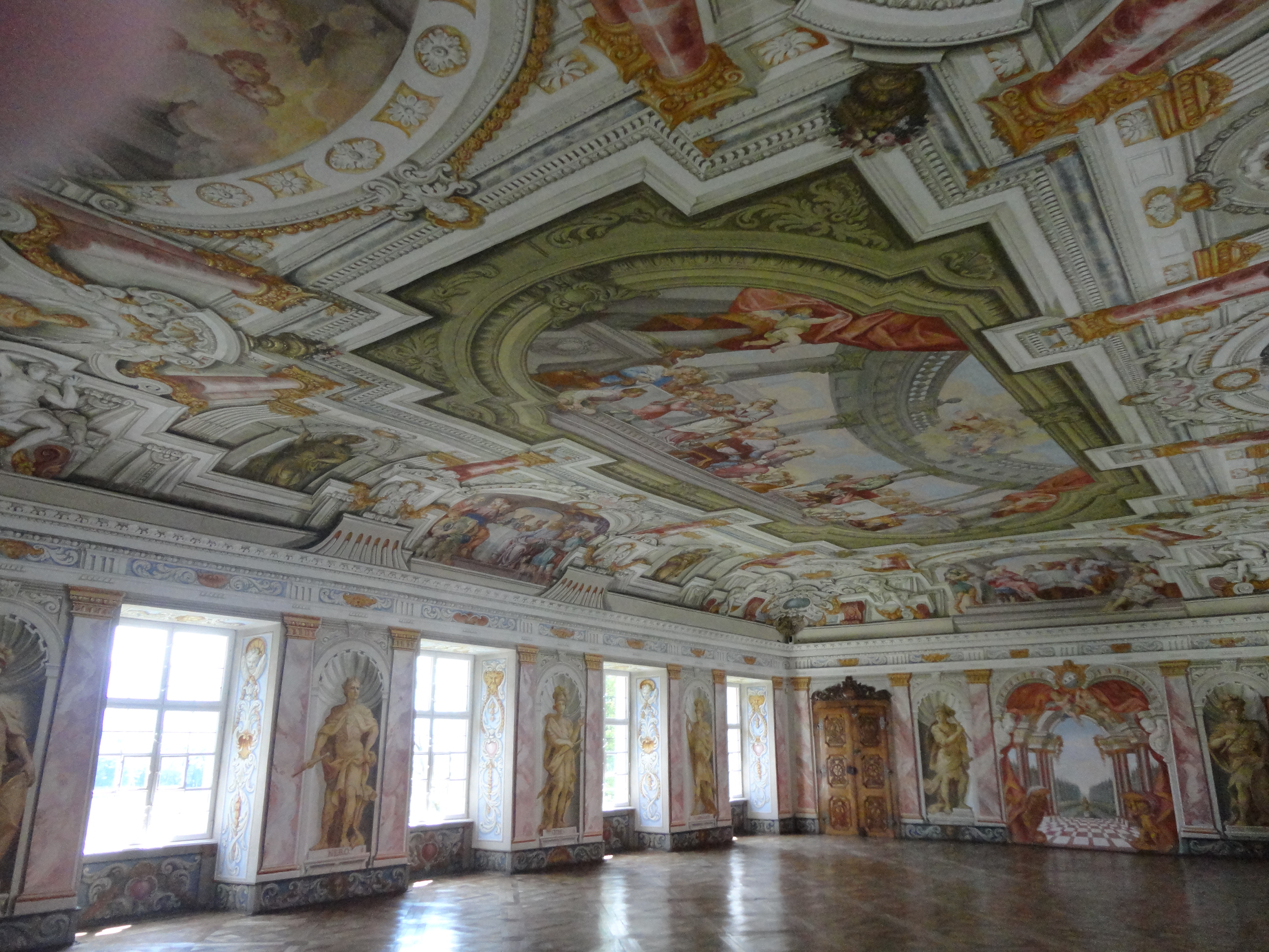 ミュンヘンとザルツブルクの中間くらいにあるドイツ鉄道のプリーンの駅からSL列車に乗ってキーム湖の船着場まで所要8分、そして20分ほどの船旅でヘレンインゼル島へ。この島に建つヘレンキームゼー城は、ノイシュバンシュタイン城ても知られるルートヴィヒ2世が国家財政を傾けるほどの建築費を使って作った最後の城。この城に住むことはほとんどなく、ルートヴィヒ2世は謎の死を遂げてしまった。
