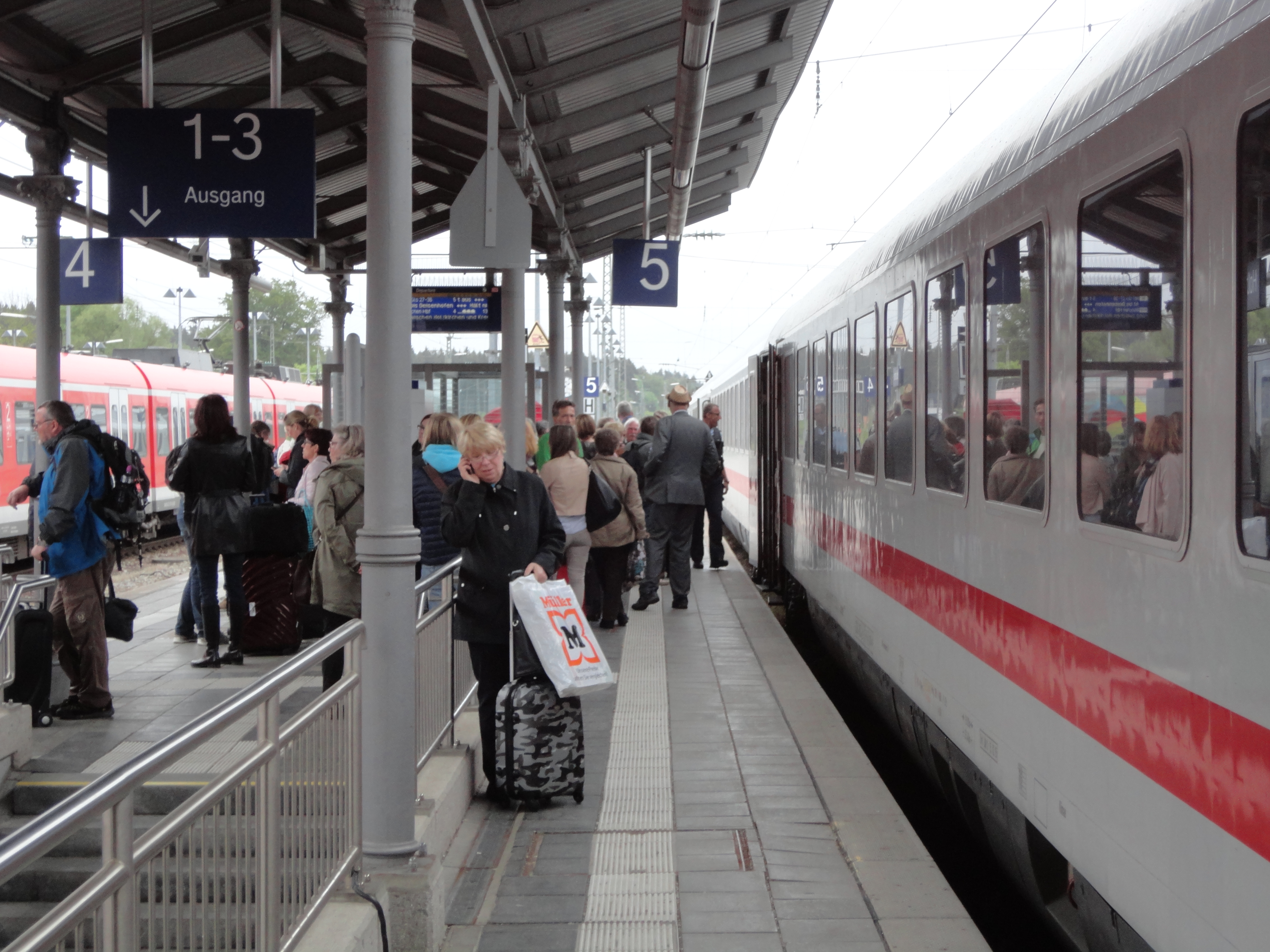 結局、救援の機関車に引っ張られて、近くの幹線駅に着いたのはそれから1時間半後。当然、この特急はそこで運転中止。乗客は、他の列車に乗り換えてミュンヘンへ。しかし、余り騒がないのは、ドイツの国民性なのだろうか?