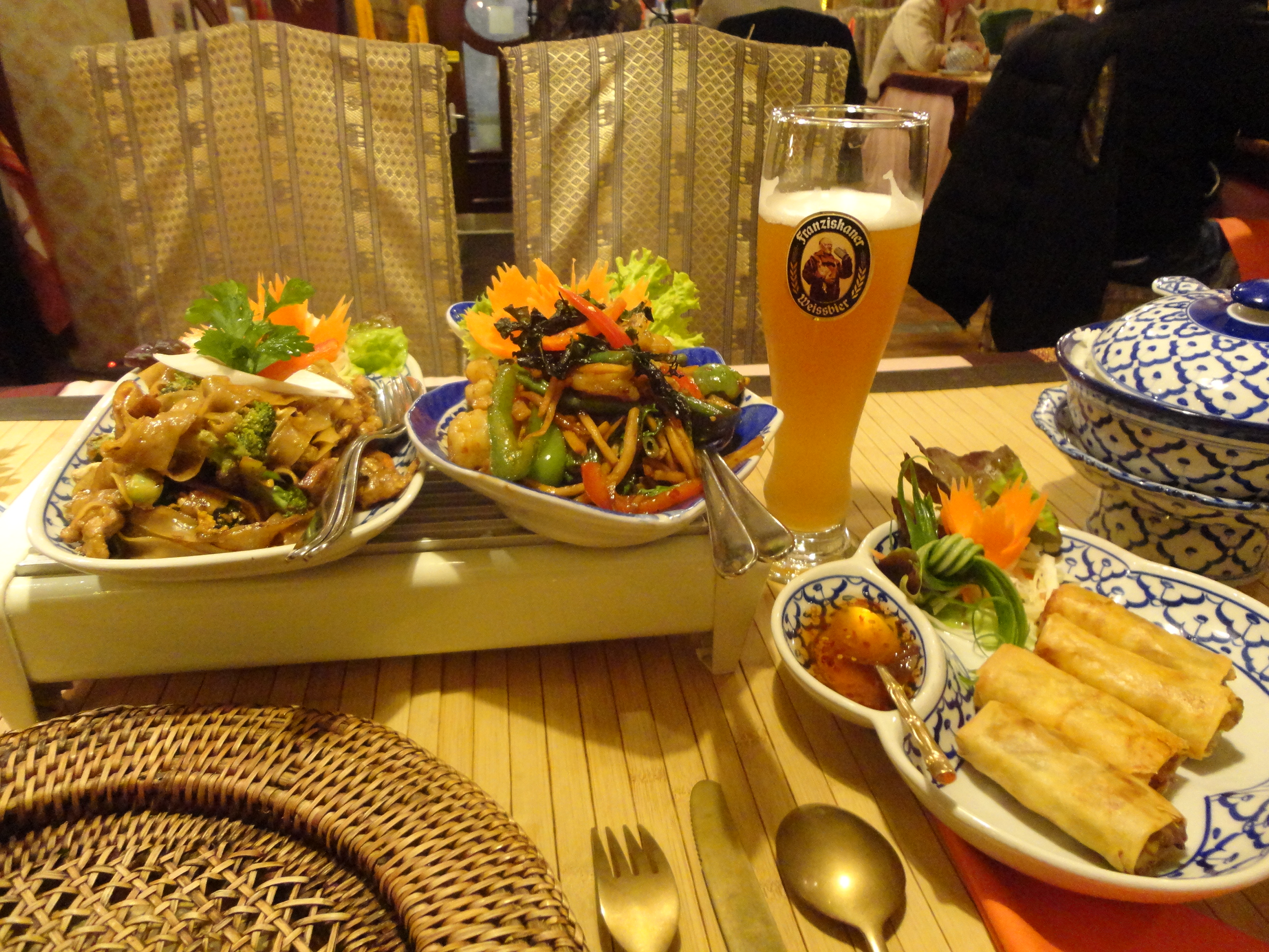 フランクフルトで乗り継いで、ハノーファーに戻ったのは21時少し過ぎ。昨夜はいつものパウラーナーのビア・レストランに行ったので(そういえば、昼もヴィースバーデンのパウラーナーのレストランだった)、今夜は少し趣向を変えて、ホテルの続きの建物にある「タイ・レストラン」に行ってみることにした。毎日、このレストランの前を通るのだが、今まで、行ったことはなかったのである。