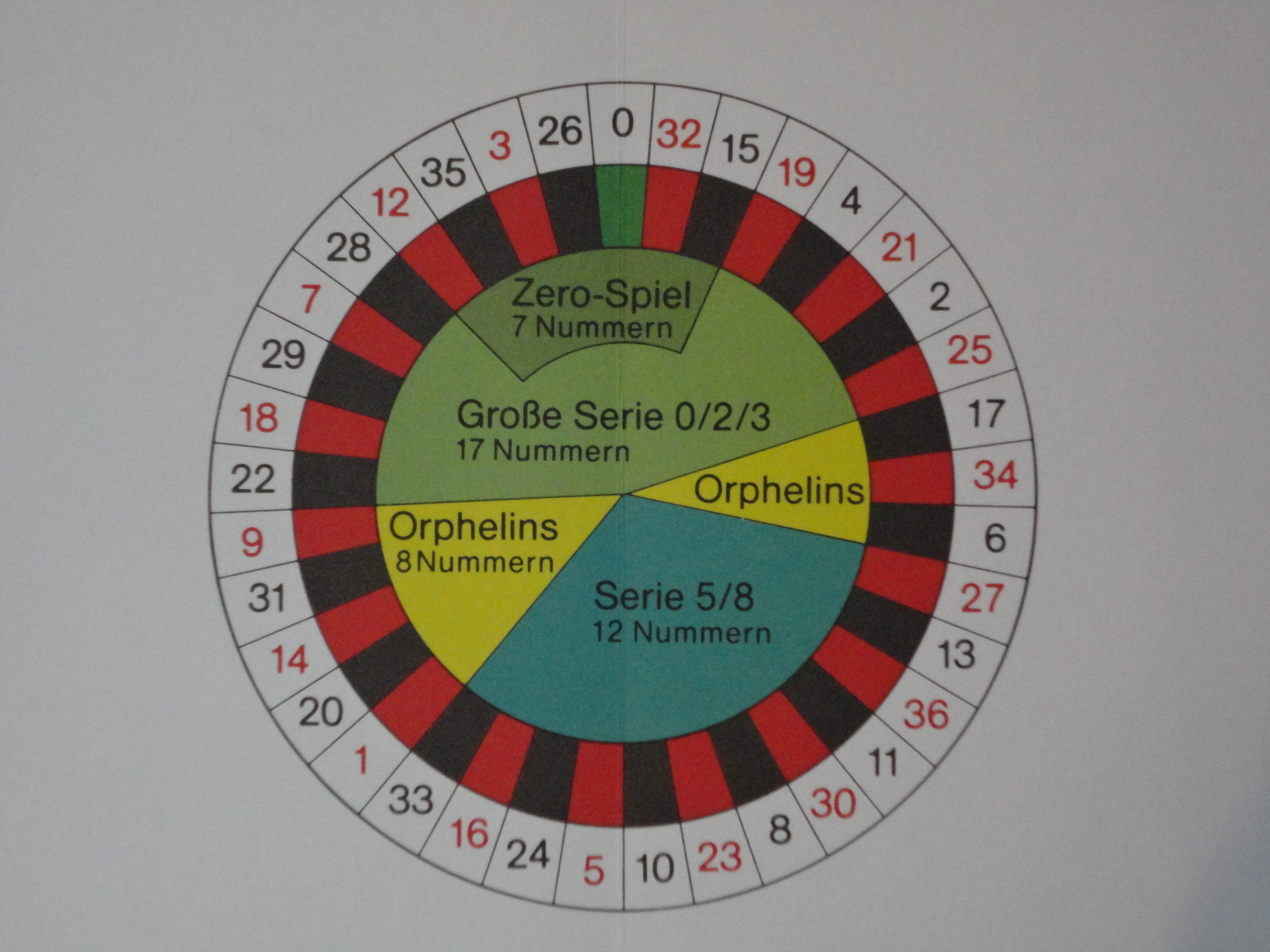 0/3(ゼロ・スピール)は、ヨーロピアン・ルーレットの盤面の中心数字26の左右3数字ずつの7数字(12-35-3-26-0-32-15)に4枚のチップを賭け、26に当たった時には35枚、それ以外の数字では17枚の配当。
