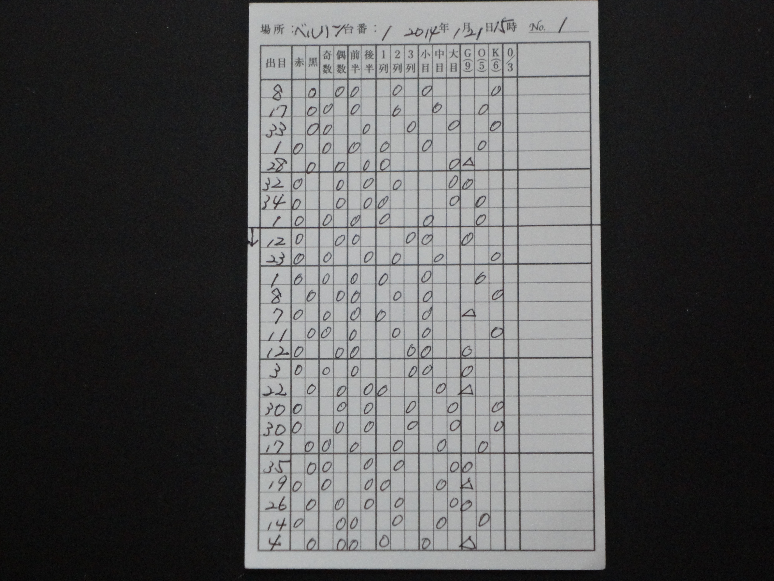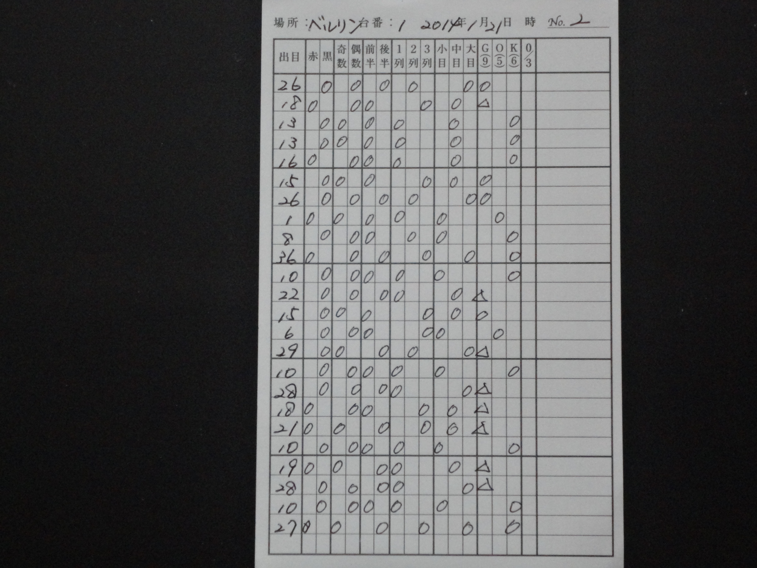 Kに移る。この前のKは3投続いたので、出目表からKの3列・・・