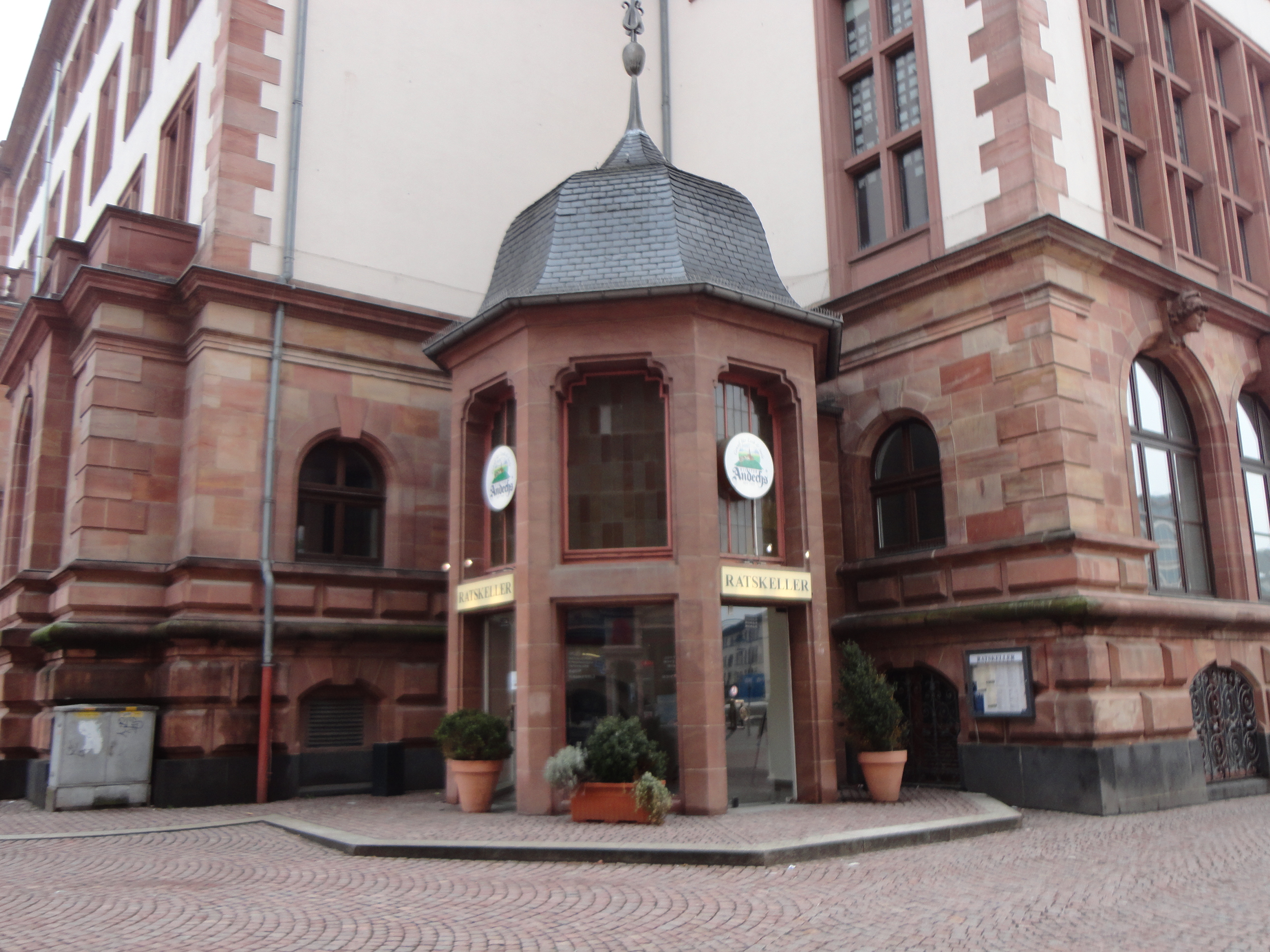 このレストランの場所には以前は、「ラートハウス・ヴロイ」(市庁舎醸造所の意)という名前のヴィースバーデンでは唯一のヴリューパブ(店内でビールを醸造している酒場)があり、なかなかいいビールを出していて賑わっていたのですが、時代の趨勢か営業を中止して、その後に「アンデッシャス」が内装や什器をそのままに今の店を開店したのです。最近は、バイエルン地方の各地に「アンデッシャス」が積極展開していますが、ビールばかりでなくバイエルン地方の郷土料理も提供しています。