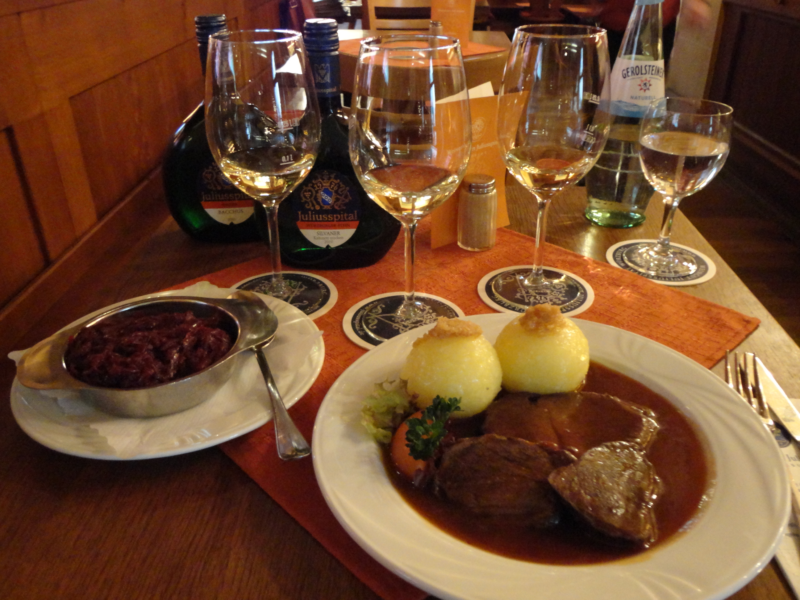 出される料理も、バイエルンの地方料理が主体ですが、オリジナルの品も多くドイツでは珍しく洗練された料理に出会うことが出来ます。筆者は豚の舌の煮込みが気にいってよく食べるのですが、ここの辛口のフランケンワインには良く合うのです。