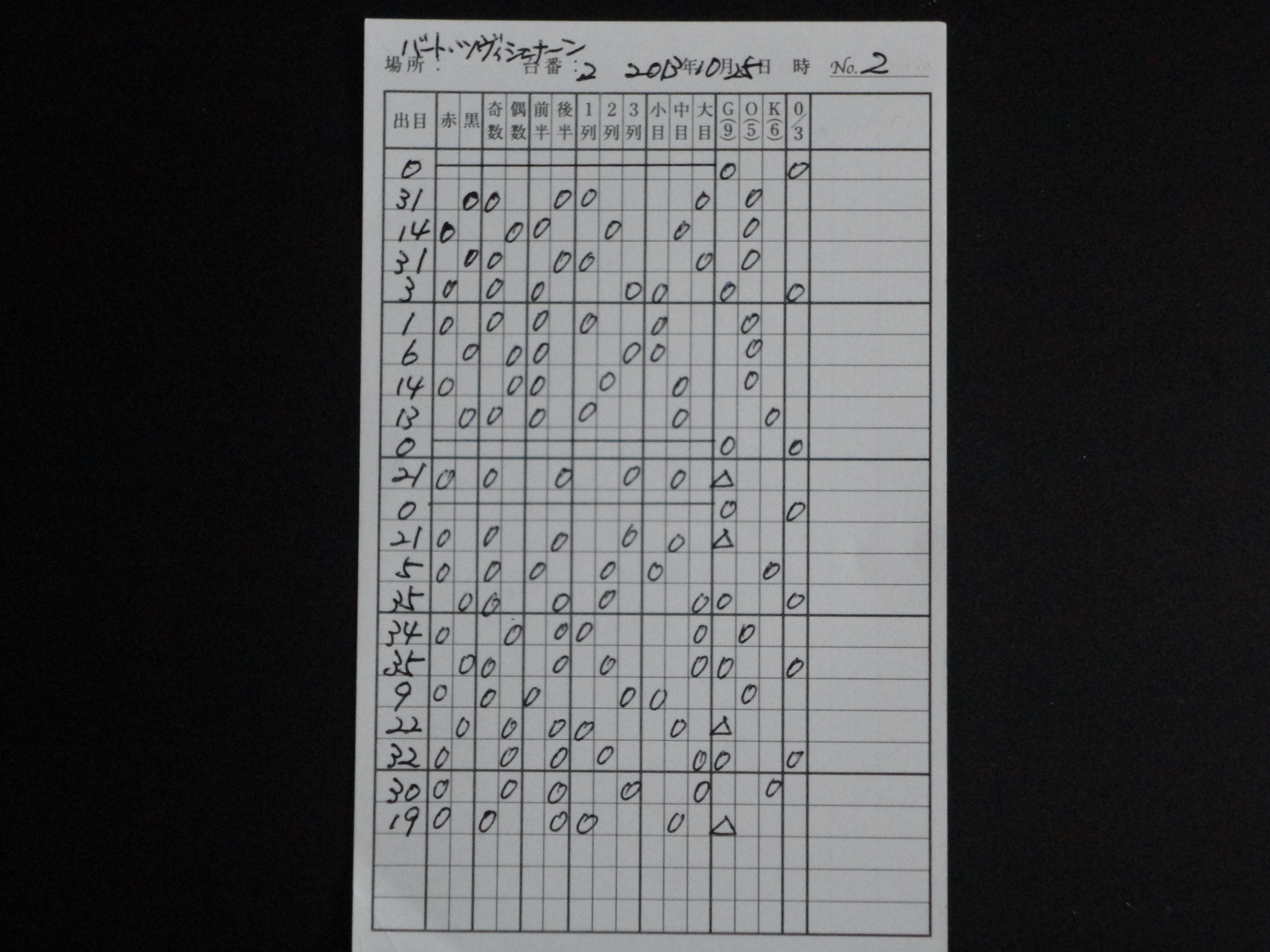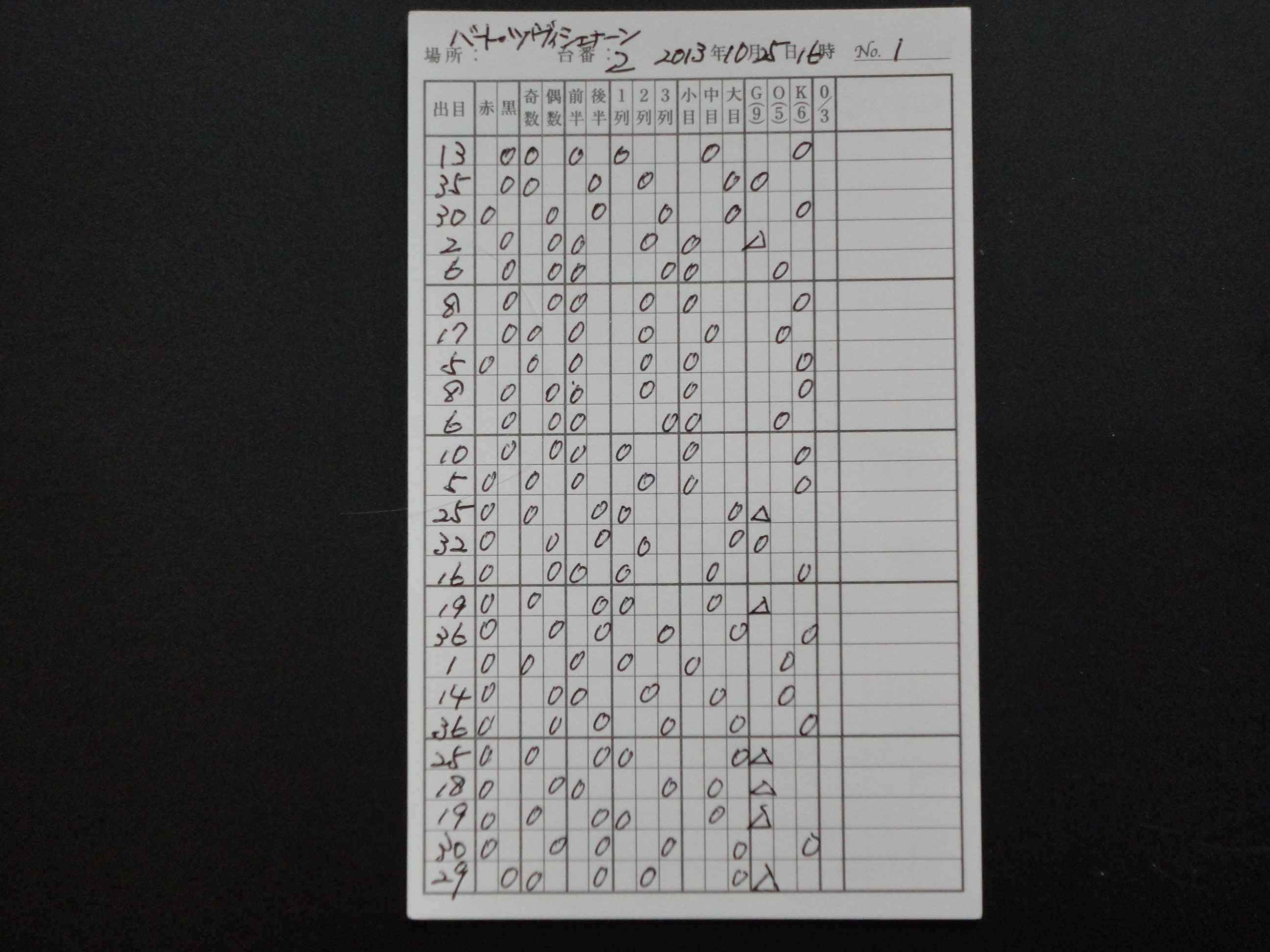 ここまで出目表からの読みが見事に当たるのも珍しいが、クルーピエが未熟で基本的なルールどおりに球を投げてくれているのが良かったのかもしれない。