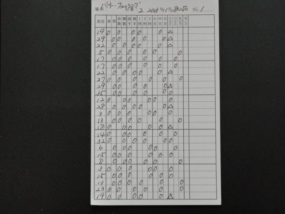 この15を外したのは痛い。出目表から、G(それも0/3が濃厚)、中目、3列と読めていたはずなのに数字で取れず、0/3に置いたゾーンの4枚だけ。2つ前の32が取れているのだから、この15を外すとは・・・