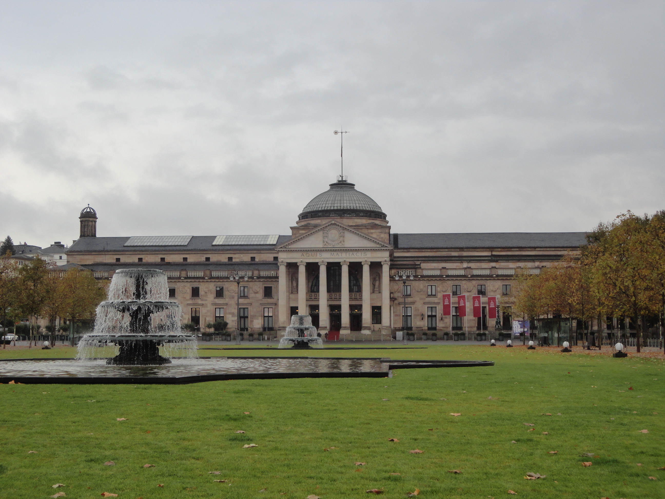 宮殿のような建物「クアハウス」の中にカジノはあります。この建物の裏にはクアパークという広大な公園が広がっています。