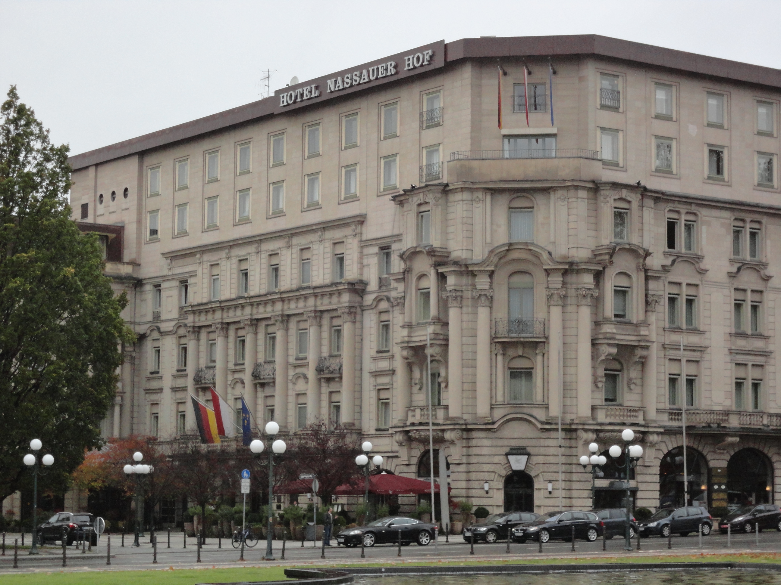 「クアハウス]の前の芝生の前庭を挟んで、向かい側にある「ホテル・ナッサーホフ」。ドイツでも最も歴史と格式があるホテルで、ドストエフスキーもこのホテルで『賭博者』を執筆したといわれています。