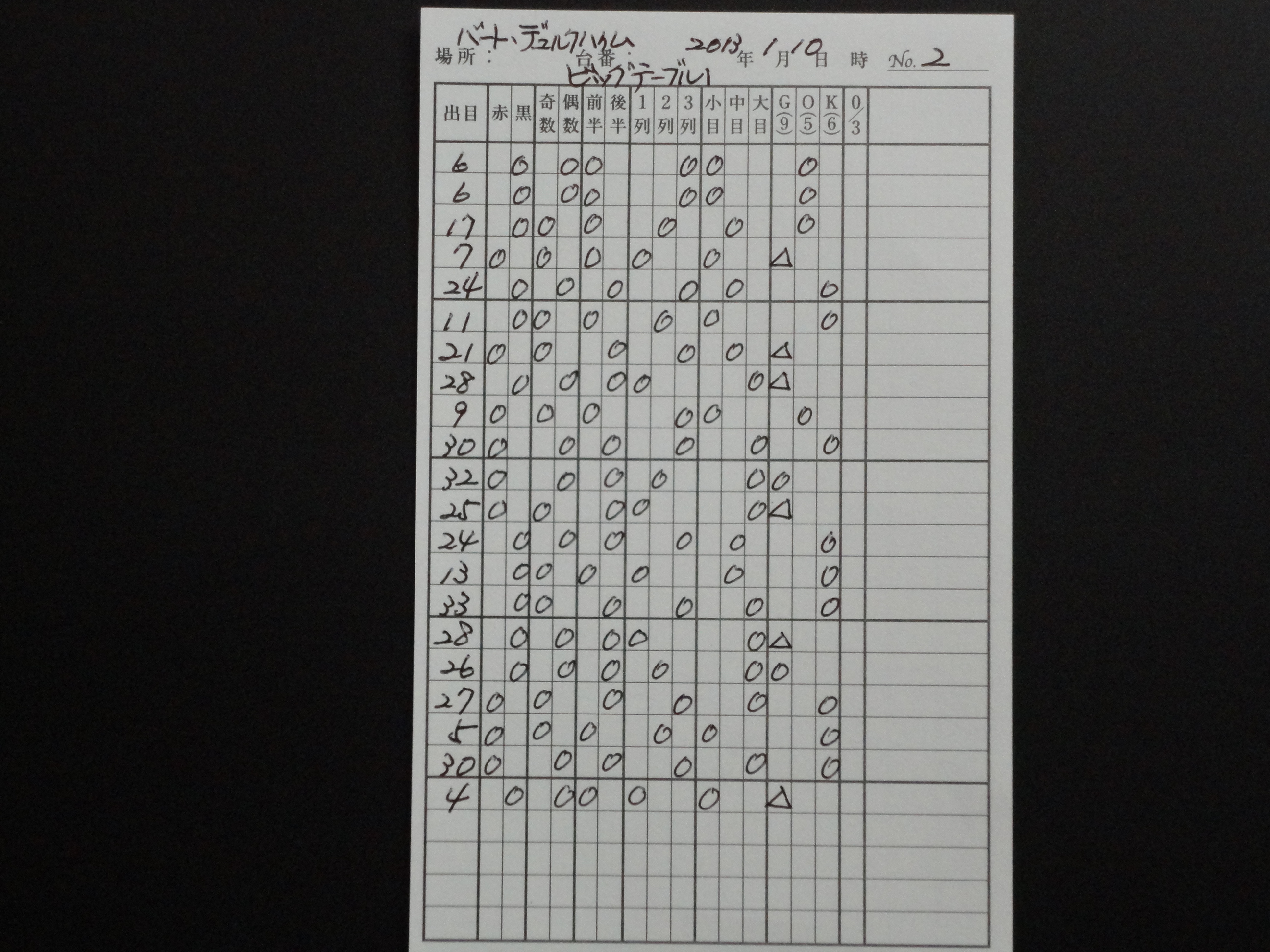 今回も16投目の6の後から参戦すれば、Orのツラも取れたでしょうし、最後のGとKの2個3個の流れももっと的確に取れたはずです。今、出目表をもう一度見て、最後の4の後は26か35だったろうと思っています。9以降、12回出ていないOrもいずれ狙えるでしょうし。