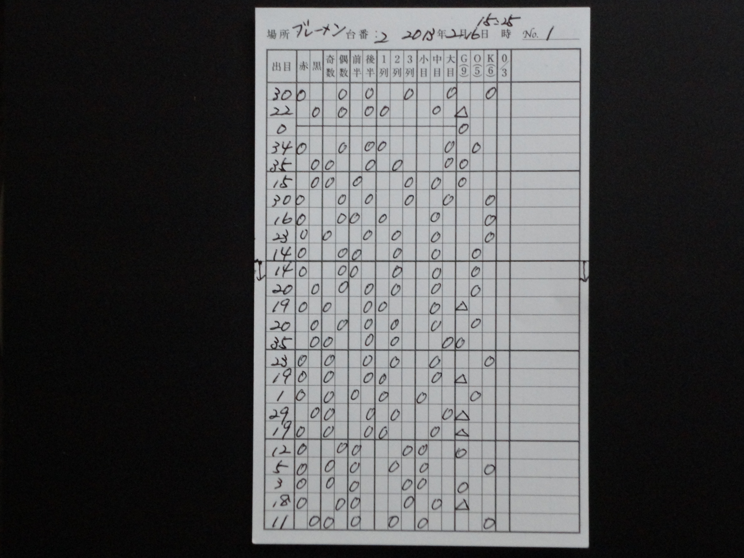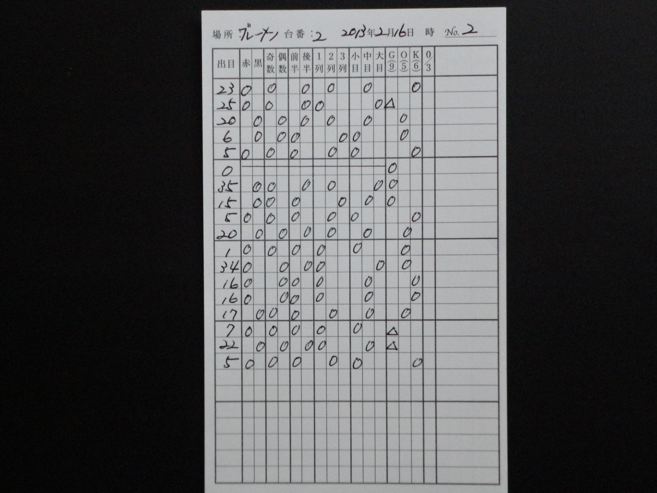 出た目は、14。リピートである。GからKに移って、Or(オフラン…GとKに挟まれた左右合計8数字のゾーン)が薄かったので、とりあえず最初の賭けはOrに5枚置いて、トイレに向かった。