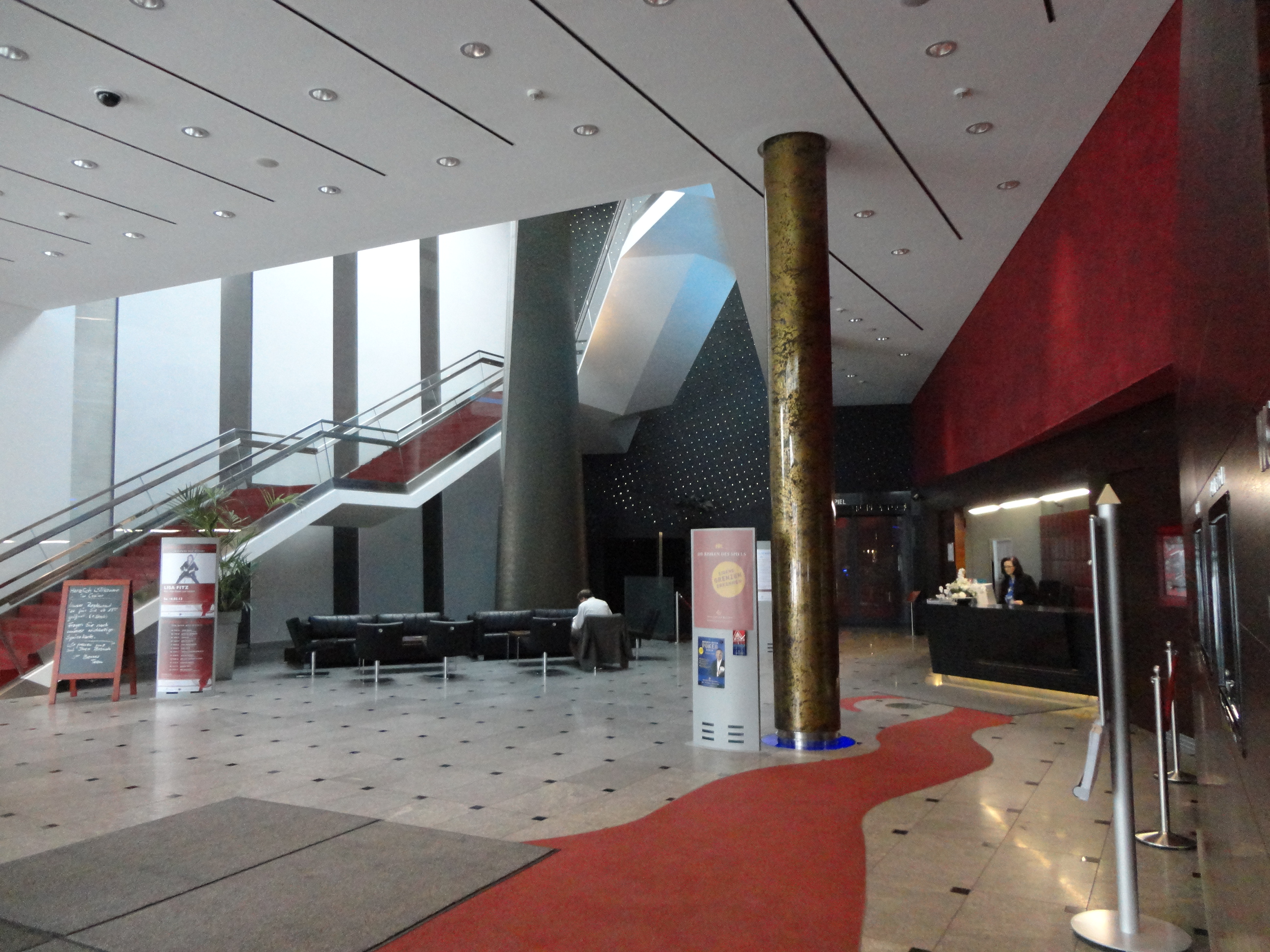 やっと辿り着いたカジノは、湖畔に建つ近代的な大きな建物。15時がオープンなのだが、余裕をみて少し早く来たのでまだ40分ほど時間があるが、とりあえず建物に入ることにした。入り口の回転ドアを入ると広い空間にレセプション。