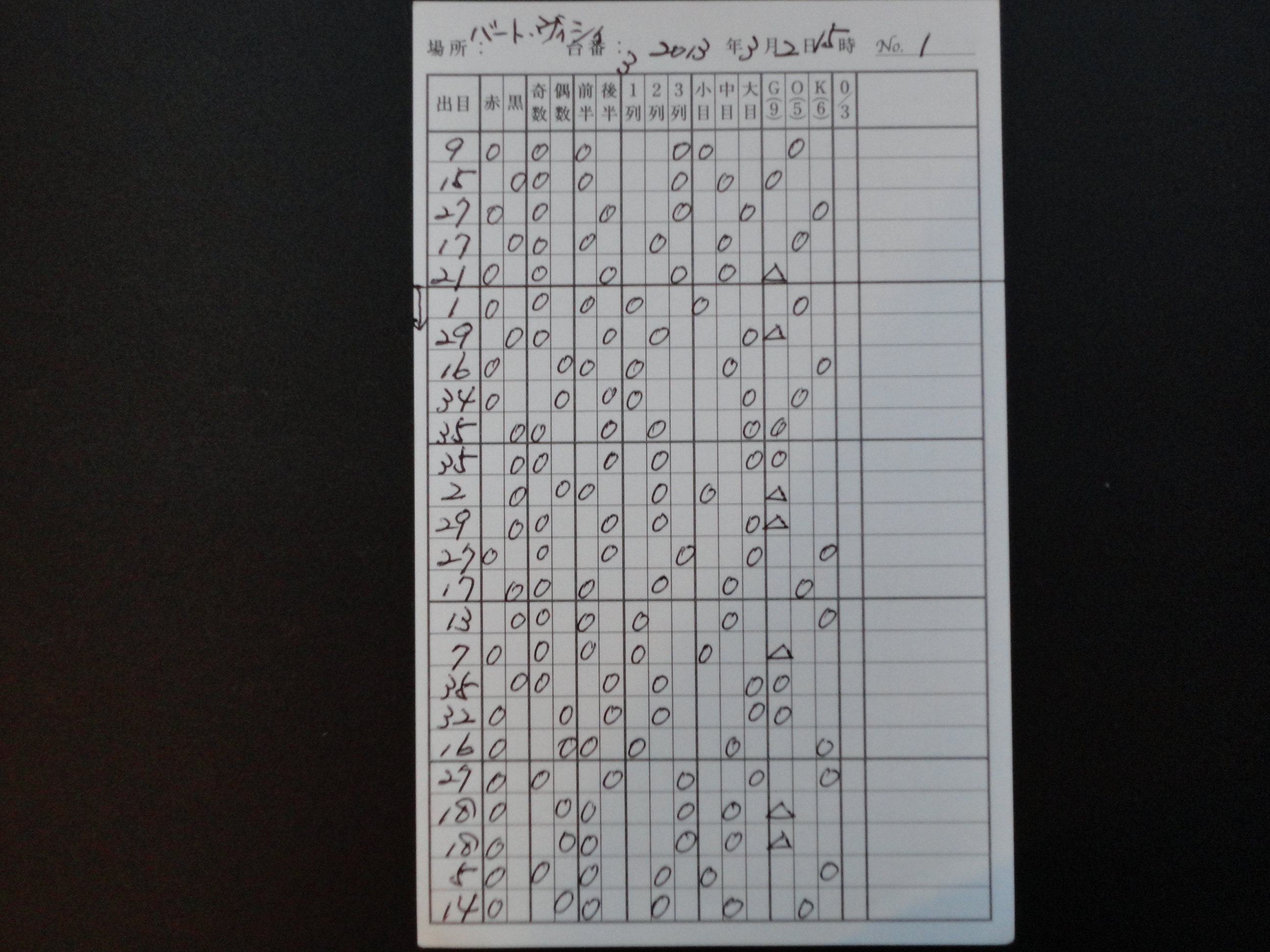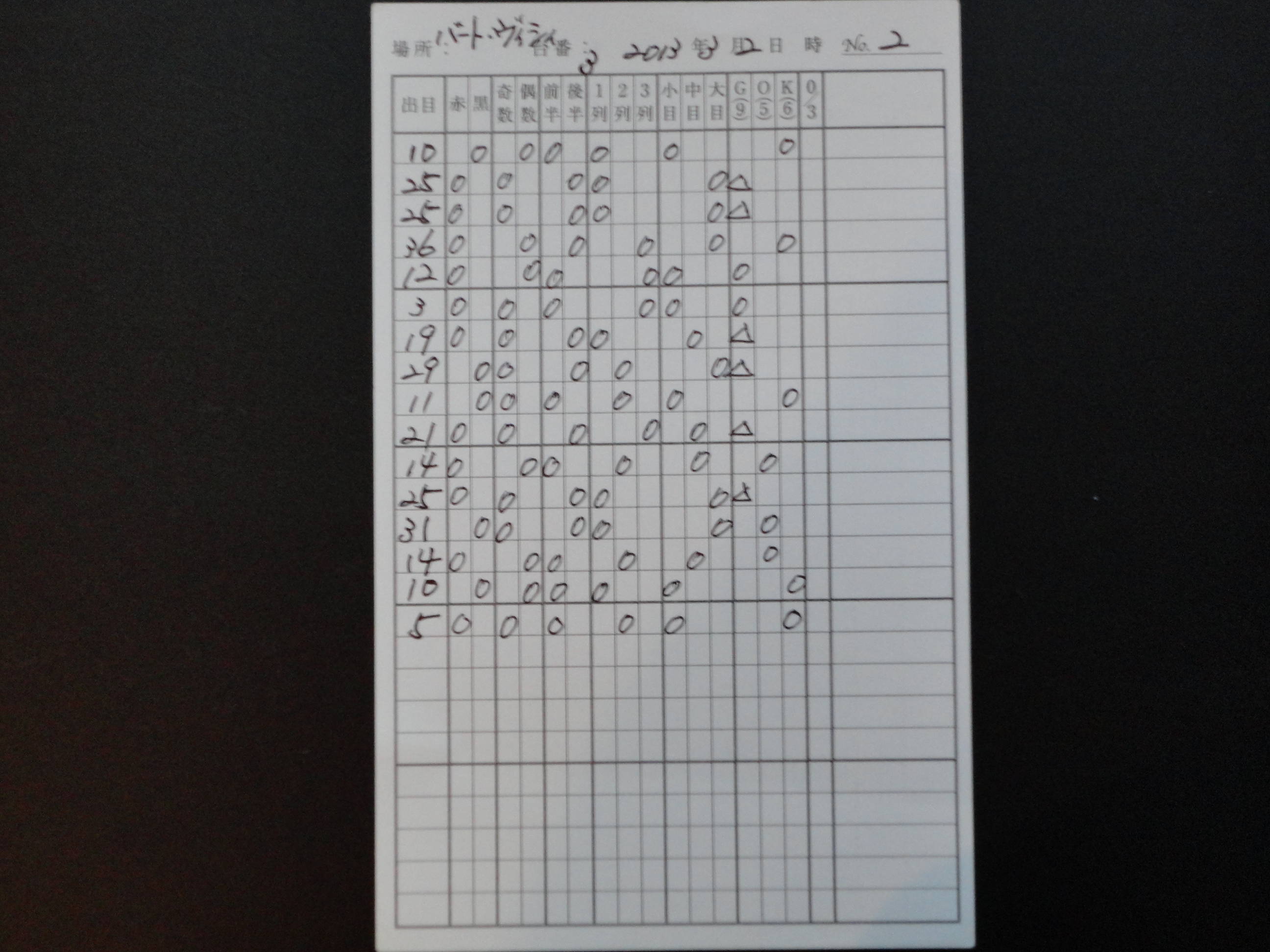 ケイ線的にはバラバラだが、唯一、K(クライン…盤面の中心の数字26の反対側の12数字のゾーン)からOr(オフラン…26から3時と9時の方向の合計8数字のゾーン)、そしてG(グロース…26を中心にして左右8数字ずつの合計17数字のゾーン)の方向に出目が流れている位が読み取れる。