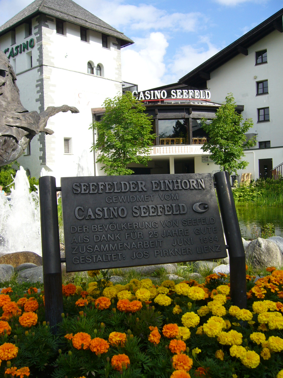 ゼーフェルト(Seefeld)は、オーストリア西部のインスブルックから鉄道でドイツ方面へ30分ほど行ったところにある人口約3000人の街。日本の地図だとよほど大きなものを探さないと載っていないし、旅行ガイドにもほとんど紹介されていないが、自分では「こここそ桃源郷」と思っている。オーストリアアルプスの山並みが美しく、山頂まですぐに行けるケーブルが通っている。スキー場、ゴルフ場があり、小さな湖の周囲には馬車も走っている。山小屋風のホテルや貸別荘も多く、それらがみなこのカジノと同じように気品がある。乾いて澄んだ空気の中で夏は朝から夜中まで鳥がさえずり、アルプスの山あいに気球やパラグライダーがゆったり浮かぶ。