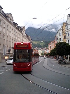 カジノで勝てると、その街の印象も良くなるが、インスブルックはその分を割り引いて考えてもいい街だと思う。ウイーンやザルツブルグほど観光地化されておらず、街歩きをしても疲れない。市街地の中央を水量豊富なイン川が流れ、オーストリア・アルプスの山並みが間近に迫る。とくにおすすめは路面電車。初めての街を訪れたときは、市内交通の1日券を買い、電車かバスで適当に1つの路線を始発から終点まで往復することにしているが、インスブルック駅前から乗ったSTB「Kreith」行はすばらしかった。市街地を抜けた後、1時間近くチロルの山の中腹まで登る。あんなにタフな路面電車はほかに知らない。そこからの眺めを見れば、カジノで多少負けたとしても元はとれる…と思う。