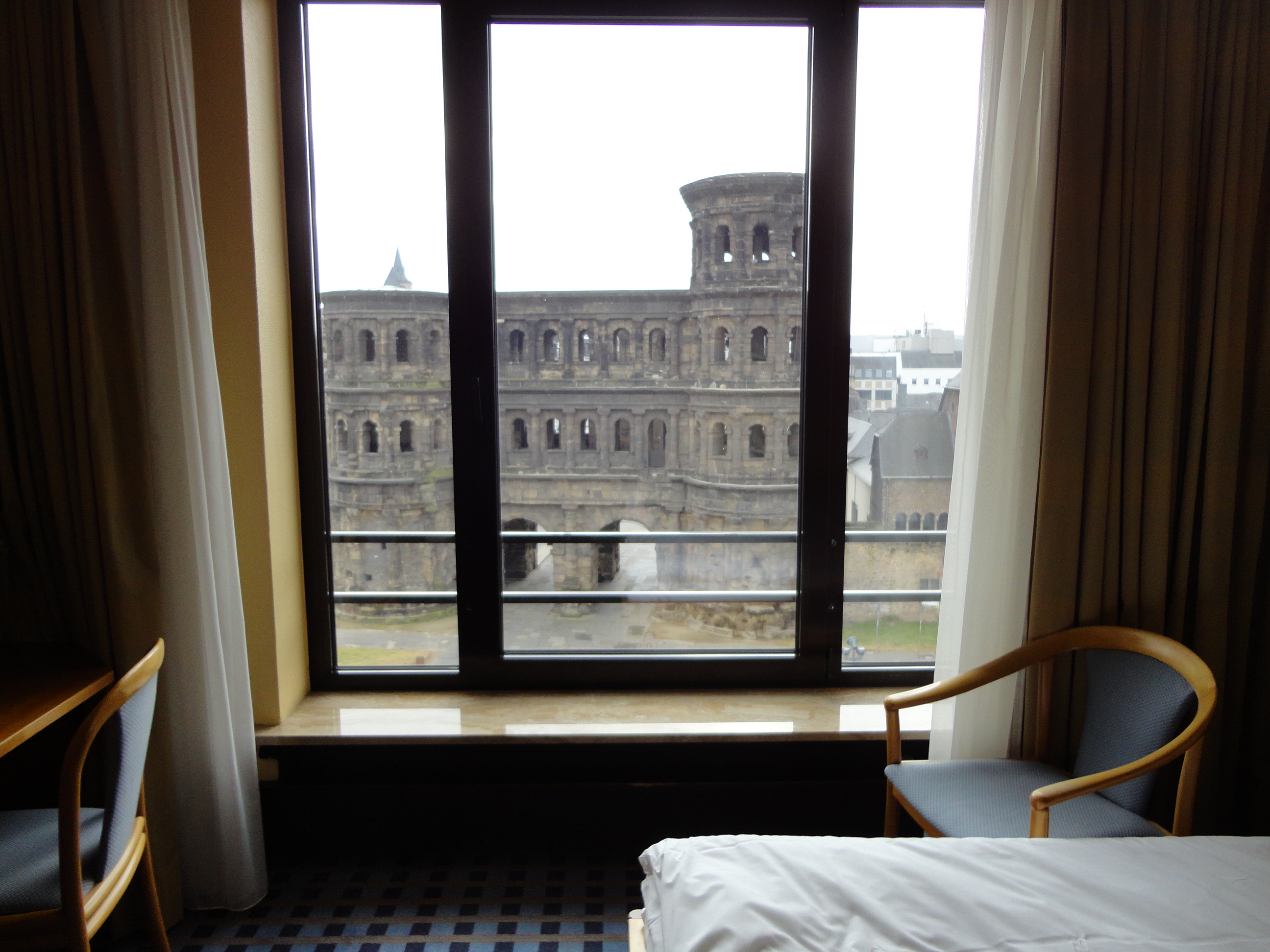 筆者のトリアーでの定宿がこのメルキュールホテル。あまり混むことはないようで、格安料金にもかかわらず上階のポルタ・ニグラが正面に見える景色のいい部屋が割り当てられることが多いのです。