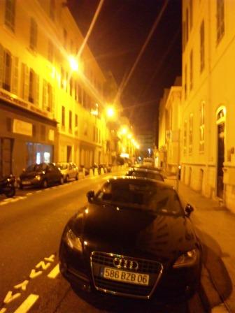 誰もいない仲通り、アウディーだけが輝いていました
