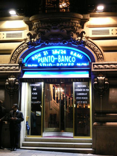 事前に http://www.casinocity.com/ で調べたところ、パリには複数のカシノがあります。ただ、位置関係があまりよくわからないので、住所を見て「シャンゼリゼ」とある「Aviation Club de France 」に行ってみることにしました。場所は、MetroのGEORGE V 駅からすぐ、ヴィトンの本店(現在工事中)の斜め向かい、シャンゼリゼ沿いのビルの2階でした。シャンゼリゼに面した1階に入り口がありすぐわかると思います。(写真参照)