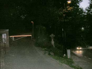 あらかじめ調べた場所と、標識が違うんだけど標識を信じて歩いてみる。ところがそれが結構いい坂道。車も激しく通る。左手にはお墓がありゆっくり、上っていった。(写真1)