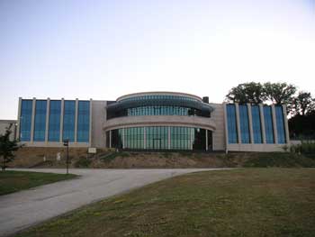 右が上がってきた道、左がカジノへの道?どっちにしろ、確かめてみようと思い、そのゲートをくぐりしばらく林の中を歩くといきなり近代的な建物が。(写真4)