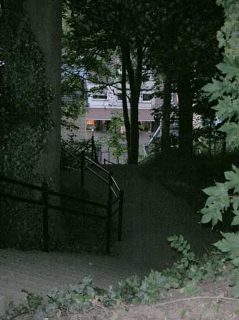 基本は車でないと、きついでしょう。パーキングはめちゃくちゃでかいから駐車に関しては心配要らないのだが、駐車料をどうも取るようだ。車で行ったのではないのでいくら位なのかわからないのだが。歩きなら先の怪しい入り口以外に町中心部から何カ所か、階段で行く方法もある。私も探検したのだがそのうちの一つは、こんな階段だ。
