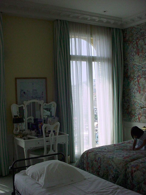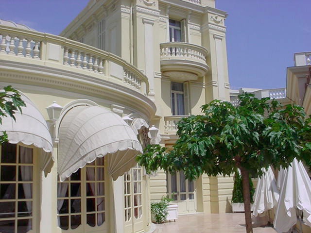 かみさんの意見で男性的で重厚なオテル・ド・パリよりも、女性的で華麗なエルミタージュをということで、1年近く前にwebサイトから直接予約しようとしたら、なんとsold out。(ちなみにインターネットレートで1泊2500F、税込みだとなんと5万円)。たぶん、バカンスのピークで、例の花火大会と重なったのも原因だったのかも。結局、日本のエージェントを通して2泊だけ押さえることができました。