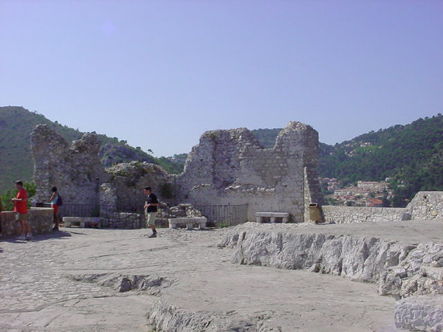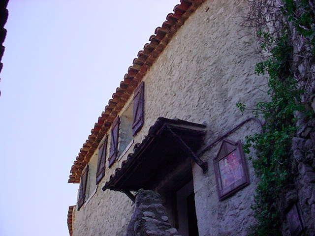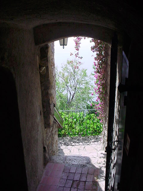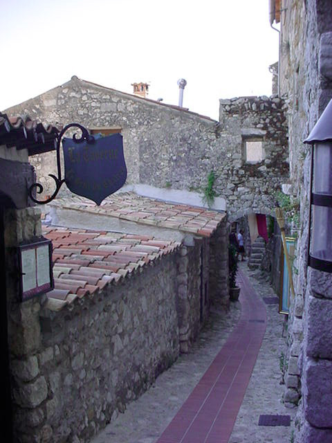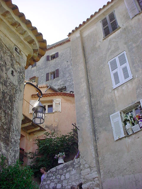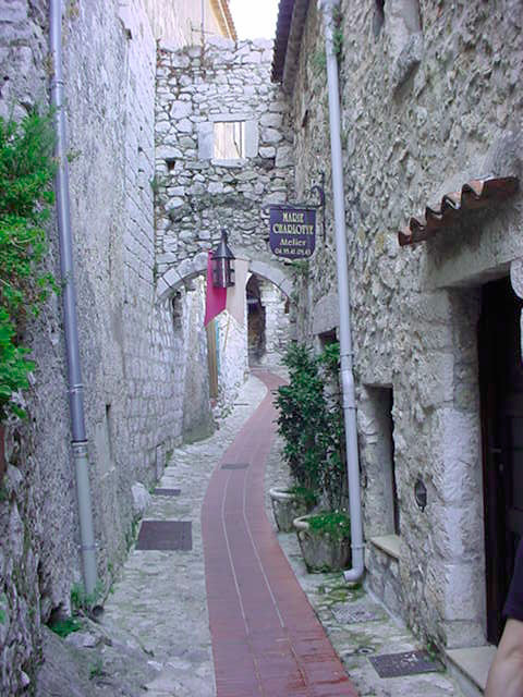 写真のようにエズ村は、中世からの城壁に囲まれています。曲がりくねった細い石畳の路地と石造りの建物。住民がいるのかどうかはわかりませんが、大半はふたつのホテルとギャラリー、カフェ、クラフトショップ等々。京都参寧坂の西洋版みたいな感じです。あ、そうそうエズ村は別名「鷲の巣村」と呼ばれています。鷲の巣って見たこともないのですが、こういう断崖絶壁にあるからそう呼ばれているのでしょう。このコートダジュールにそういった村が100数十あるとのこと。その中で最も有名なのがこのエズです。