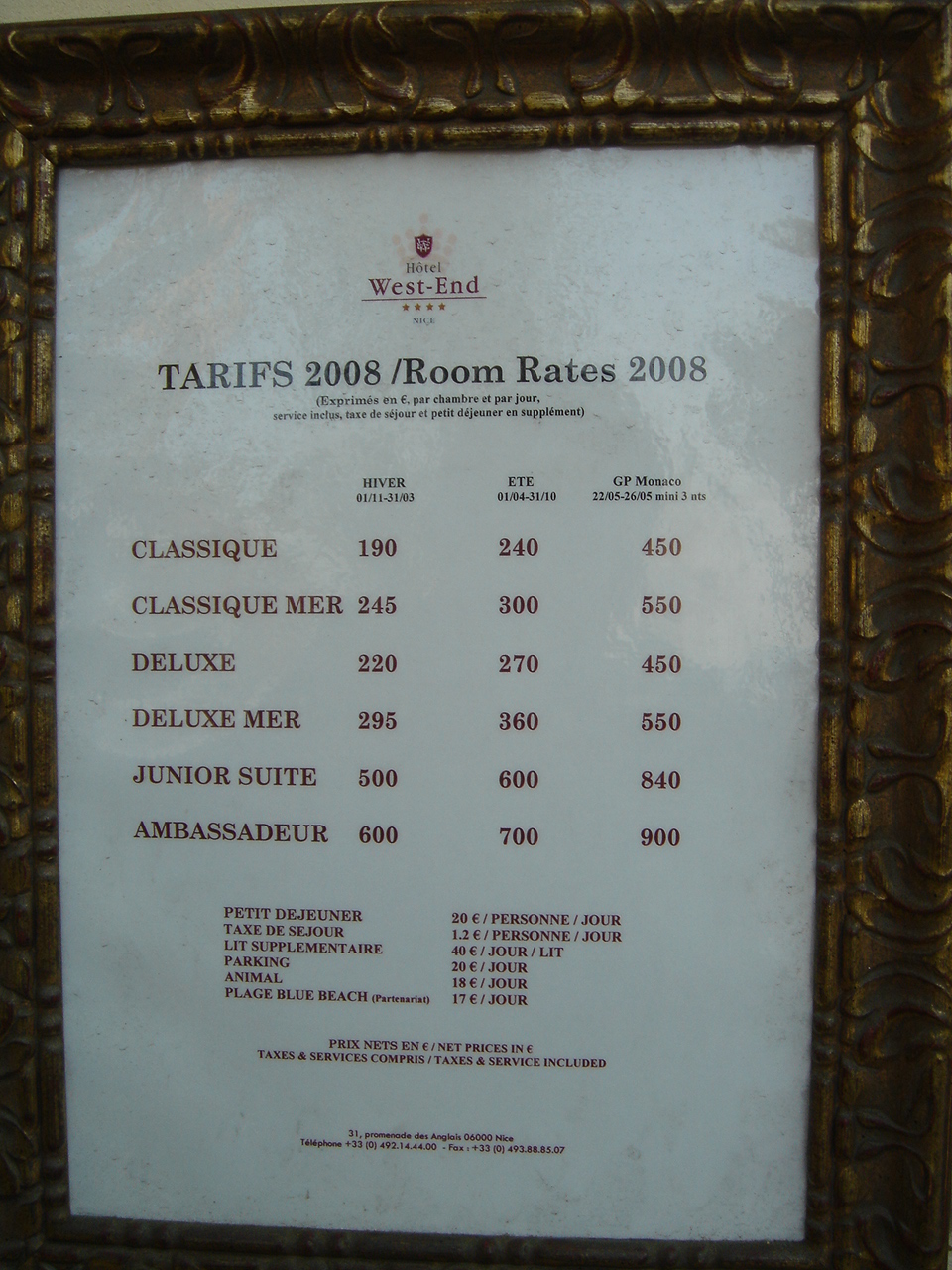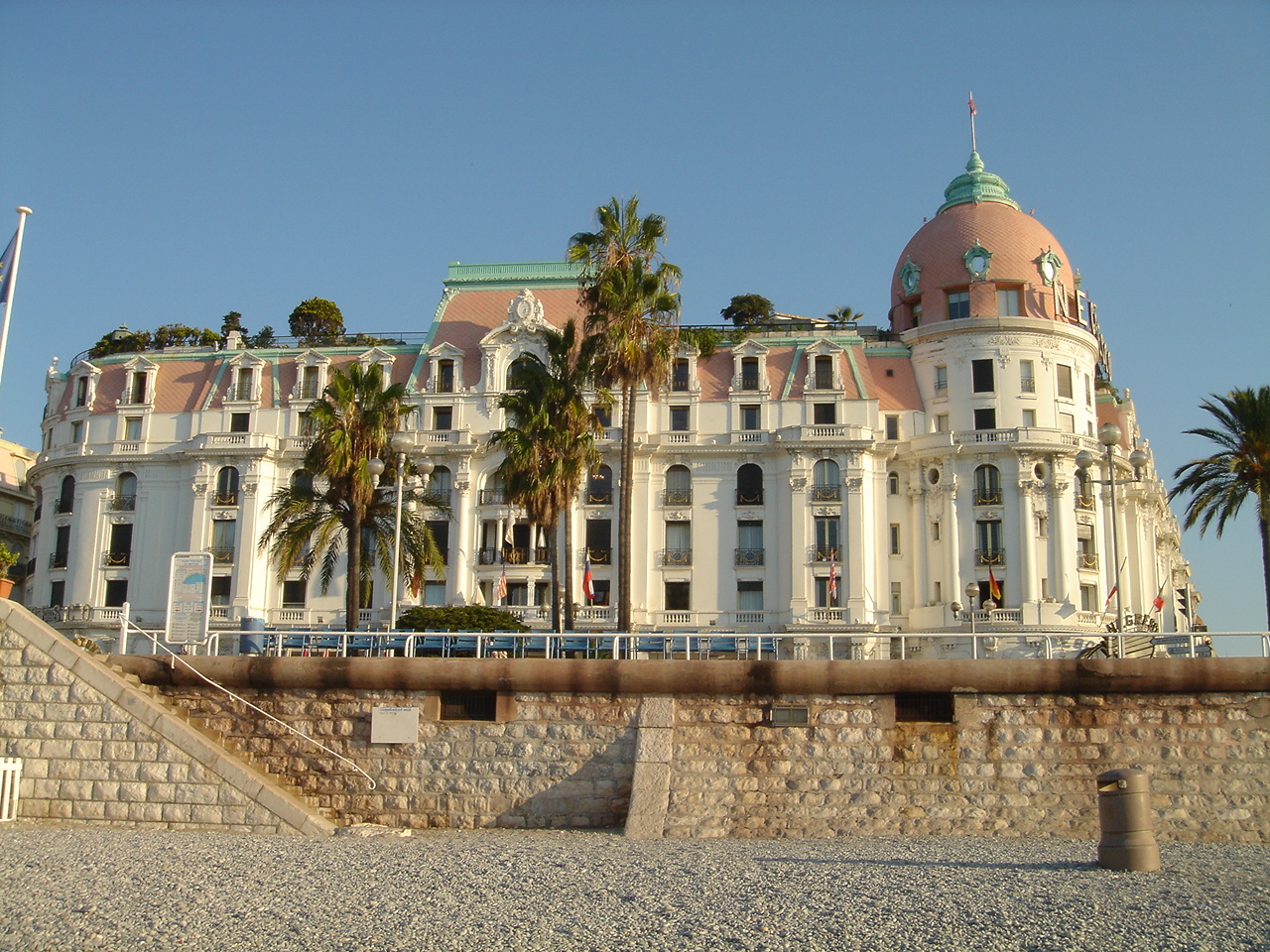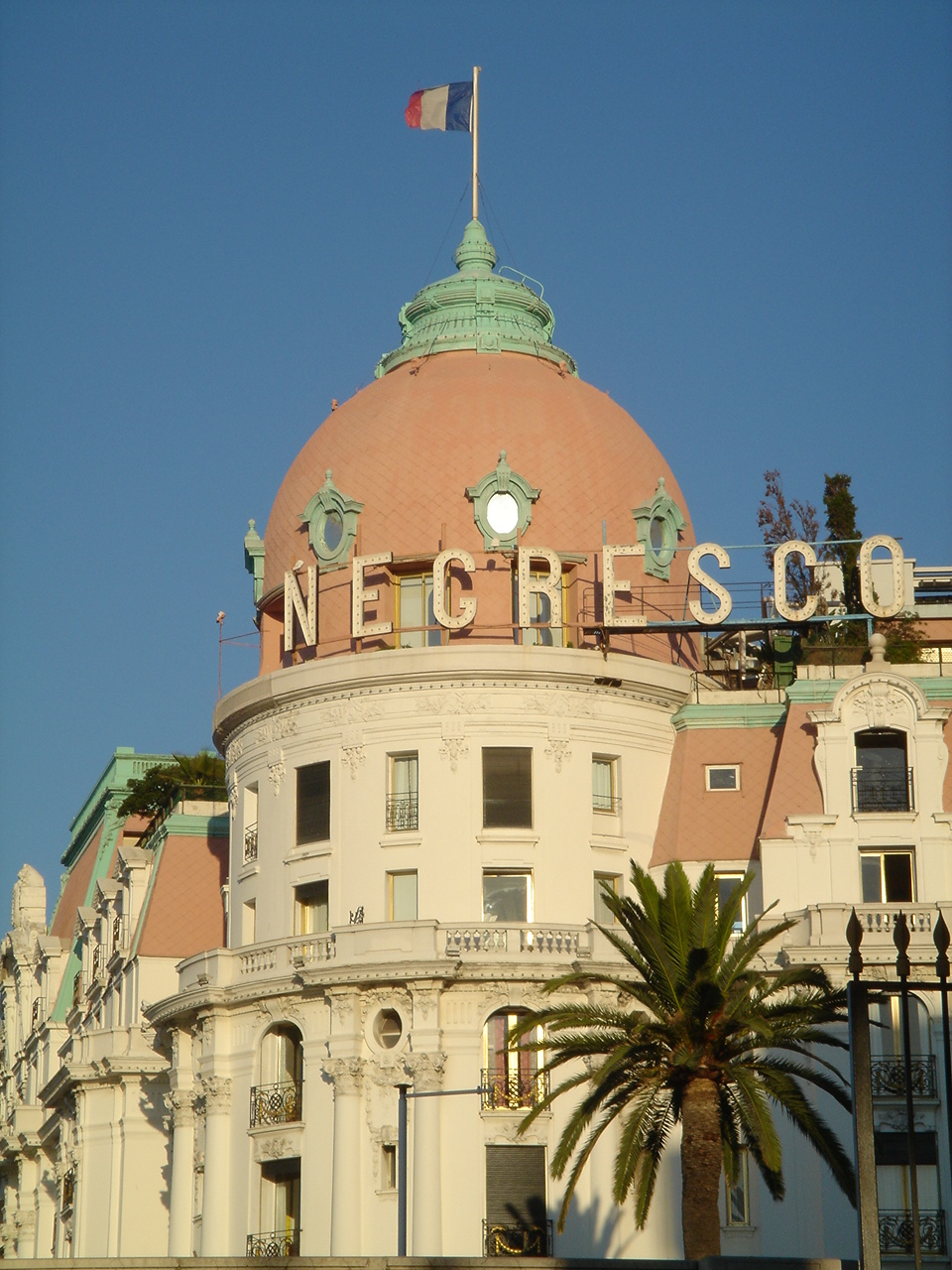 ニースの宿は、ホテルウエストエンドです。弓形のビーチに沿って走る大通り(プロムナード・デサングレ)に面したホテルで、有名なネグレスコホテルも同じ通りで徒歩1分です。