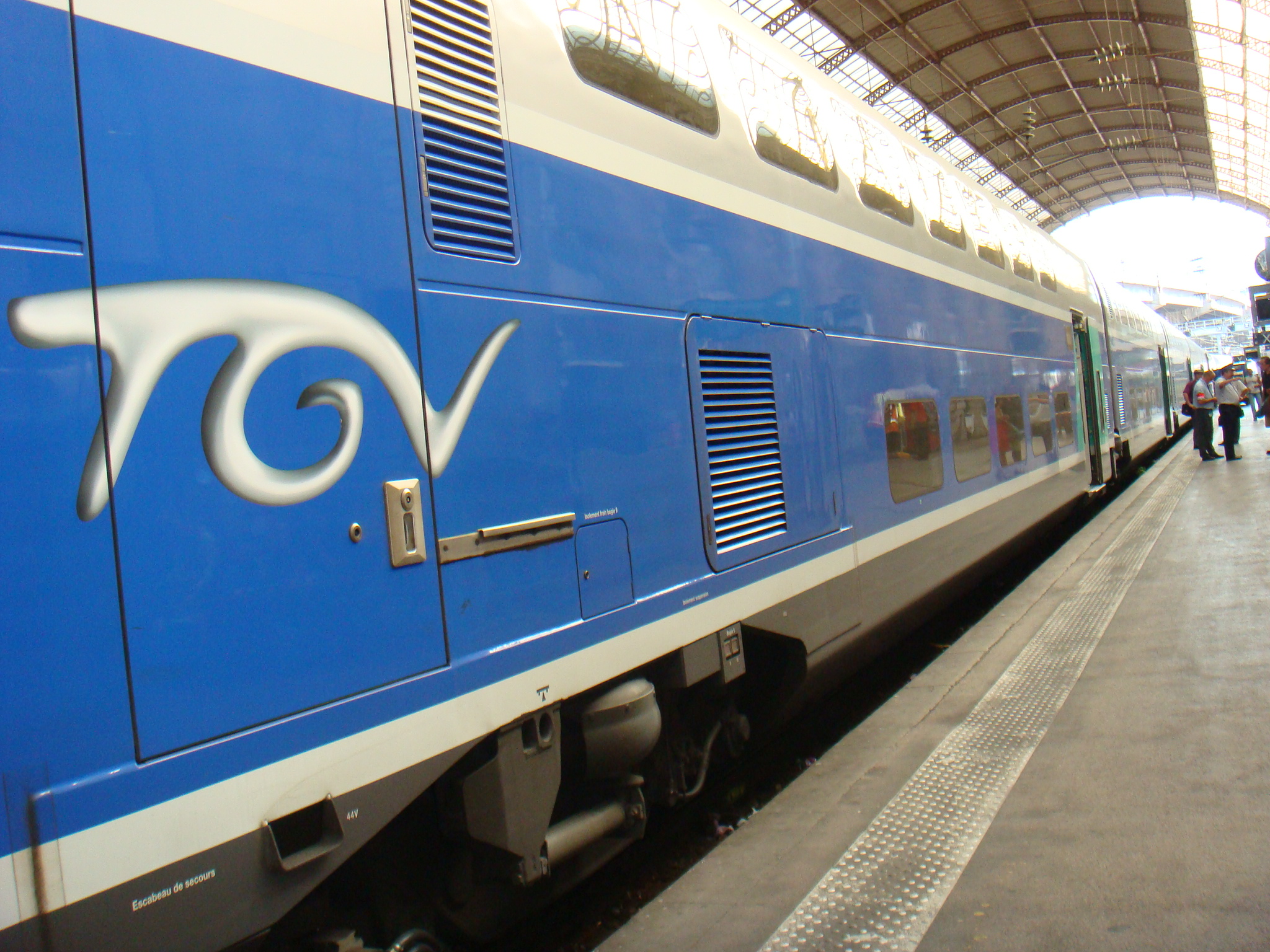 21日(木)。TGVでニースからパリへ移動です。ニース駅の改札を通り、ホームで列車の到着を待ちます。しかし、発車2分前になっても列車が到着しません。さすがにおかしいと感じて、同じホームにいた人に尋ねます。すると彼は一度、改札の外に出て、パリ行きTGVの乗車ホームを確認しました。慌てて戻ってきた彼は、乗車ホームは我々が今いるところではなく、線路を挟んだ向かい側だと告げました。そのホームには、ずっと前からTGVが停車していました。何てことだ!慌てて階段を降り、地下道を通って向かい側のホームへ移動します。我々が乗車して30秒ほどして列車は動き出しました(汗)。