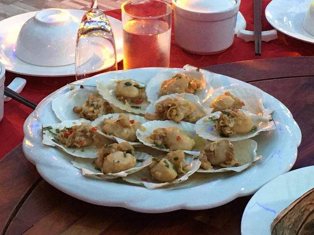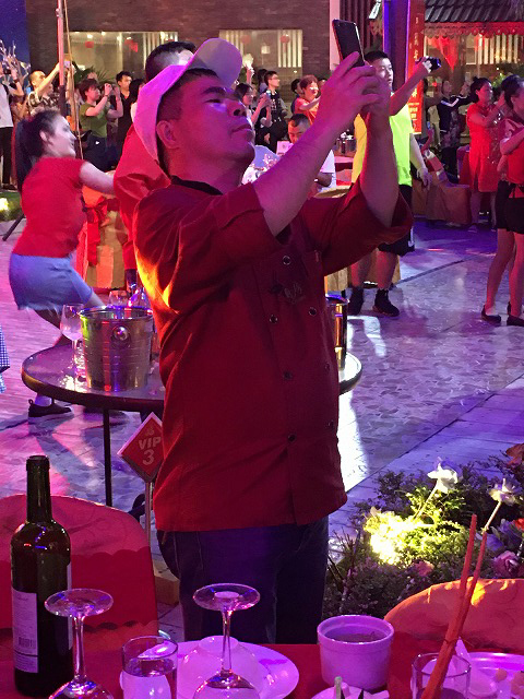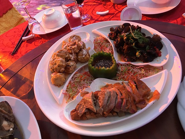 VIP客はオープンテラスに設置された回る中華テーブルに豪華な料理