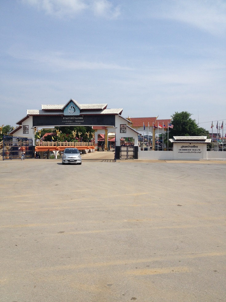 さて県道をさらに折れて、細い道を行くとようやく国境らしきものが見えた。タイから来た人のために巨大駐車スペースもあり、国境のゲートも空いていた。さすがにここまで来る外人もいないようである。