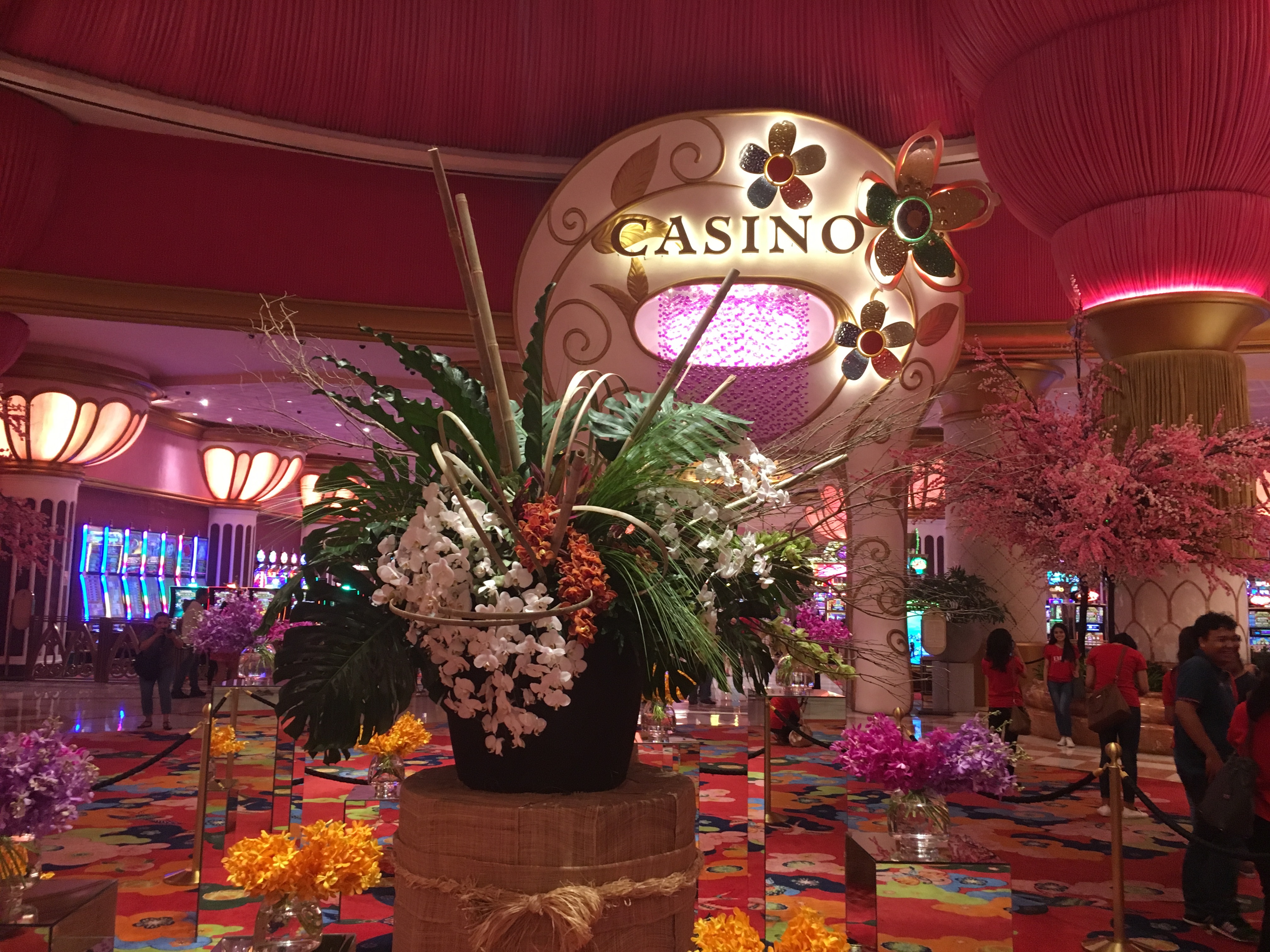 ・カジノ入り口がど派手なピンクで、桜を模した装飾などもありインスタ映え抜群です。
