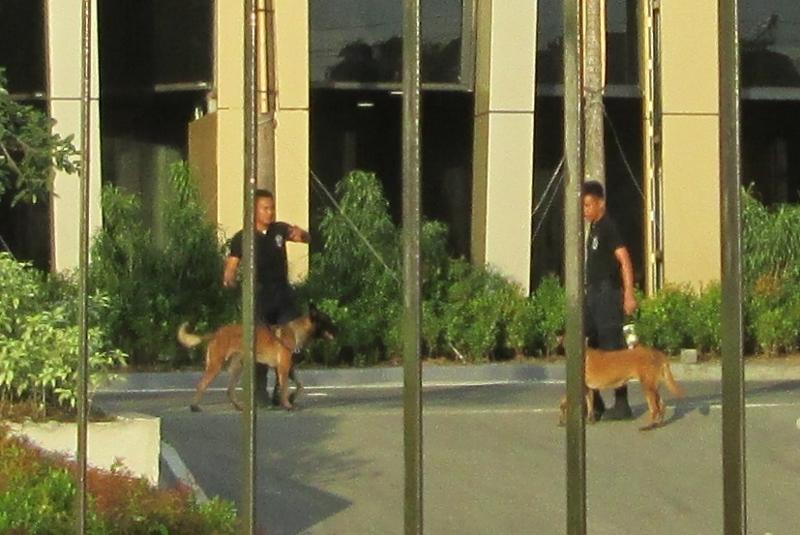 途中で入ろうにも、ガードマンは犬と一緒に見張っているので仕方なく外周を回るしかありません。