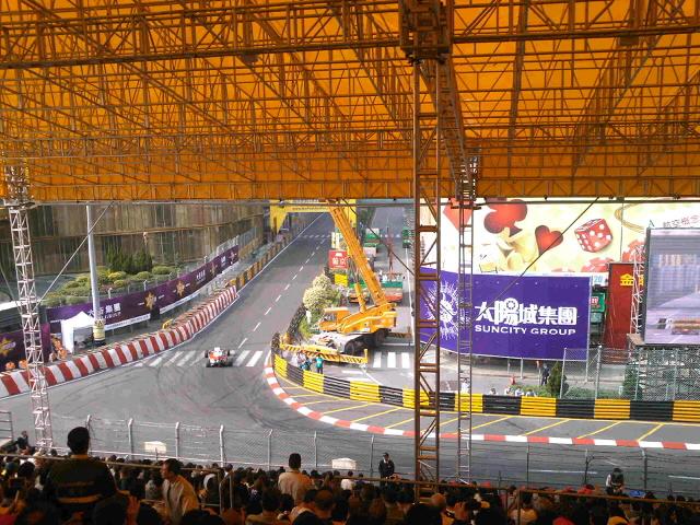 ベストシーズンの頃、たまたま取った期間がF3と重なり、決勝戦は見られずとも滞在最後の日、勝負は手仕舞いし、ランチをグランド・ラパで食べ、外に出ると突然、轟音の車が走って来て物々しい雰囲気にビックリ!思いがけなくレースを垣間見て、大興奮、Lisboa StandでMOP50のチケット買ってじっくりとこの機会を楽しむことにしました。
