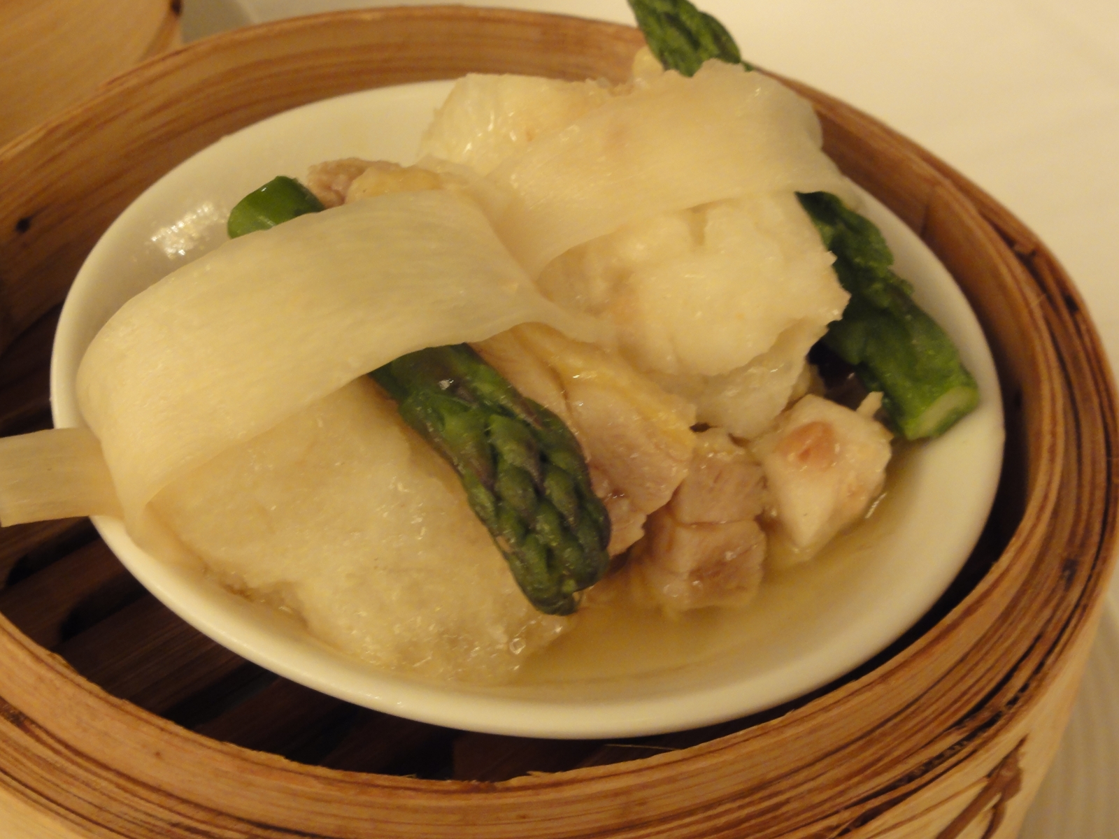 淮山滑雞扎:はじめて食べました、アスパラと鶏を山芋みたいなもので巻いています。柔らかくて美味しいです。