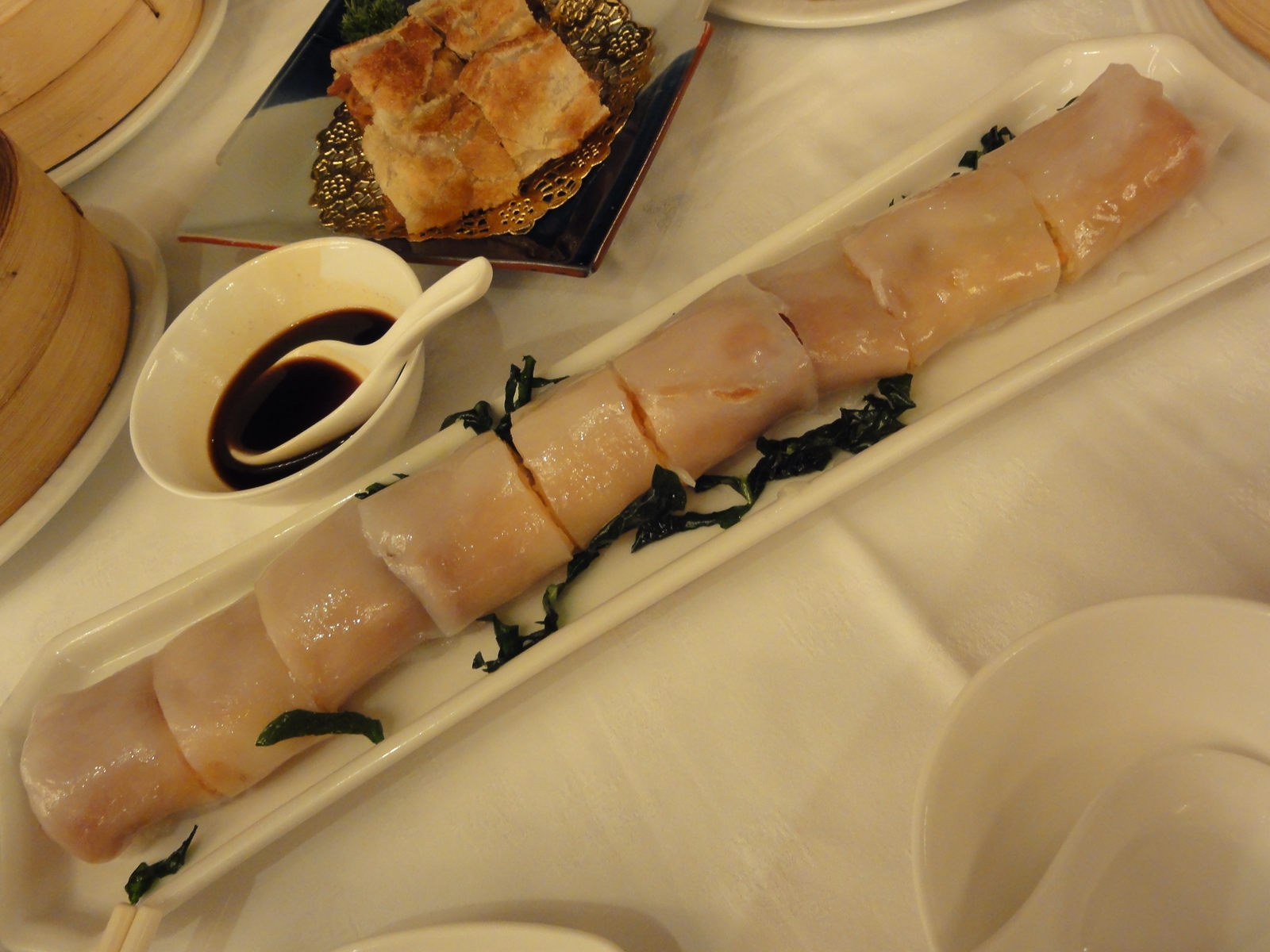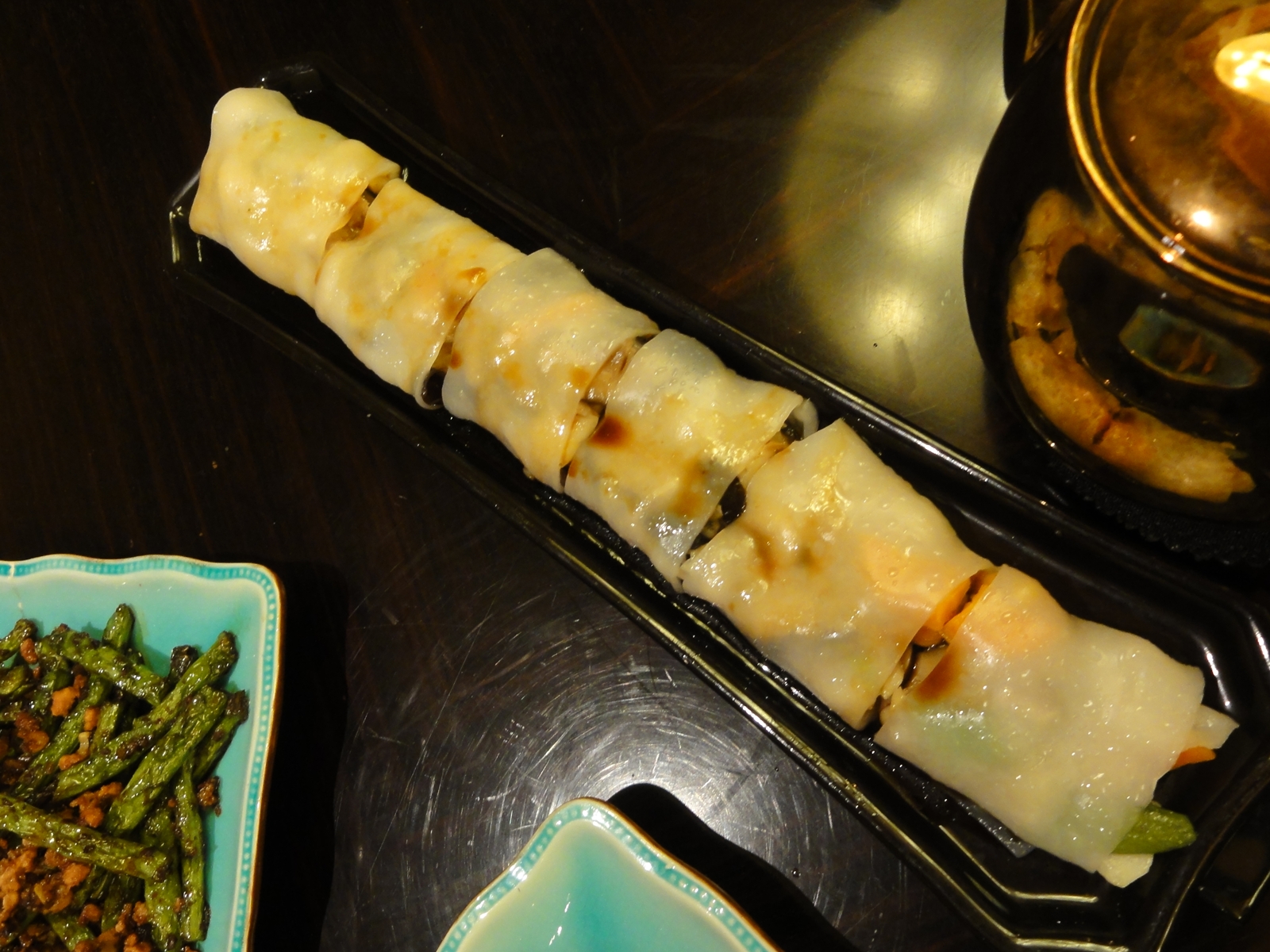 脆皮錦繡腸粉:エビ入りの揚げ春巻きをお米で作った皮で巻いて有ります。プルとした食感の後でカリッとした揚げ春巻きが出てきます、面白い食感の食べ物ですね。