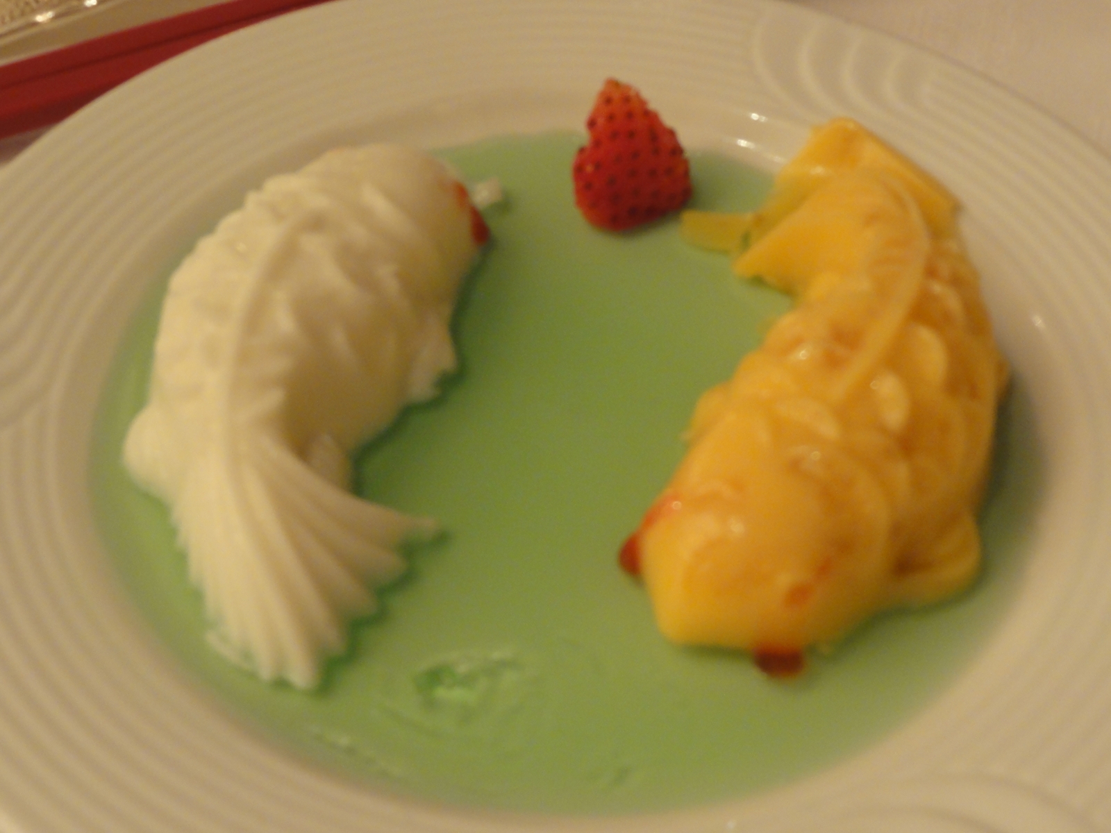 鴛鴦錦鯉凍:ココナッツとマンゴのプリンです、マンゴプリン大好きです。