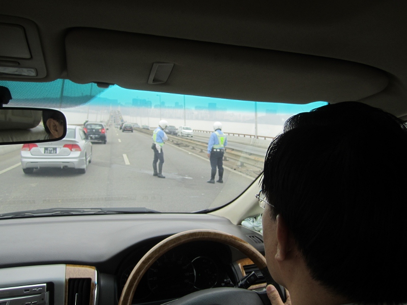 翌朝、空港まで送っていただきましたが珍しく渋滞しています。