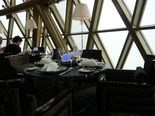 窓際のテーブルが多く、くるくる達も、窓から外が良く見える席に案内されます。43階から海、タイパ-マカオ半島間架け橋、マカオ半島内の建物の屋上を眼下に見下ろす景観は気持ち良いものです。お料理も一層美味しく感じられ、満足度UP!です。(*´ェ`*)