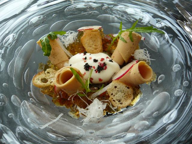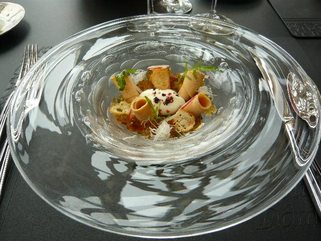 くるくるの感想では、このレストランのランチは通常、最初のウェルカムプレート(コースメニューに載りません)、又は2番目の前菜が一番美味しく、客の舌を感激させ、味覚を麻痺させた後の皿は、徐々に味が落ちていきます(笑)。(^_^;)