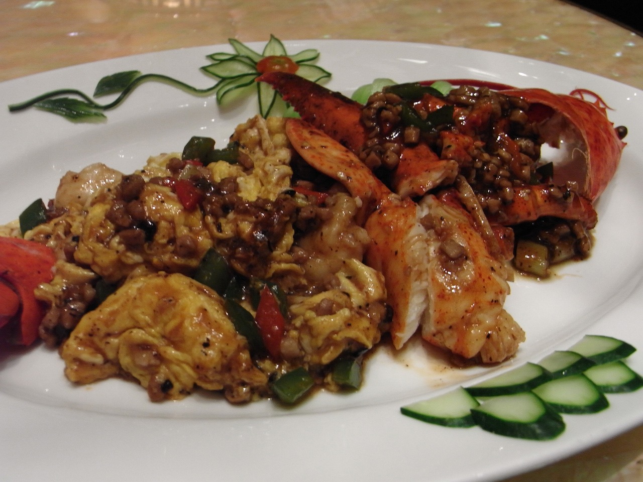次の皿は、広東式波士頓龍蝦。ボストンロブスターです。このロブスターがメニューに入ると、お値段が高くなります。(笑)なかなか頼むのに勇気がいるメニューですが、間違いなく旨いです。ソースも絶品です。