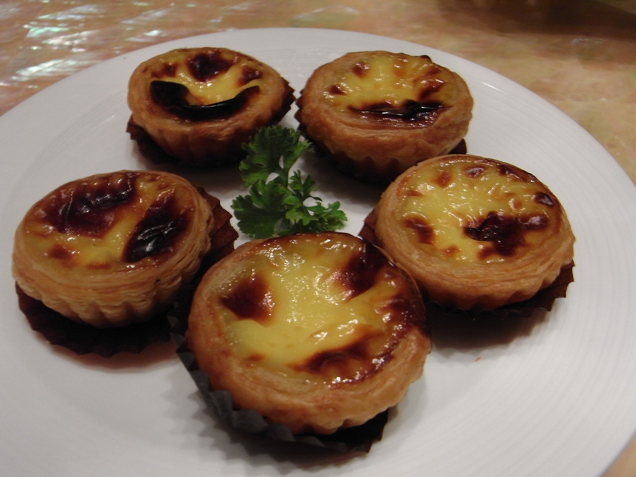 おなじみ、エッグタルトも最後に出てきました。ストウさんという方が始めたお菓子です。ほかでも、元奥さんだったマーガレットさんの店をはじめ、ポピュラーになり、マカオ中のいろいろな店でも名物になっているだけあって、これもおいしいです。リスボアはパン屋さんも名高いです。リスボアのパン売り場は、夕方の割引になる時刻には、たくさんの人が並びます。そこでもエッグタルトは人気です。余談ですが、リスボアのパン屋さんのチョコレートも安くておいしいです。豪華な箱に入っているのに、ペニンシュラ香港なんかのチョコレートと比べるとうんとお得な感じがします。
