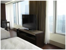 ゲートに来たのが1時、香港に入国後荷物を受け取ったのが4時、香港に入る予定はなかったのに思わぬ展開です。チャーターバスでホテルへ。どうせビジネスホテルだろうと思っていたところ驚きです。Lホテルという85階立ての超高層シティホテルでした。その79階のエグゼクティブルーム、それも角部屋です、部屋からの写真をつけました。